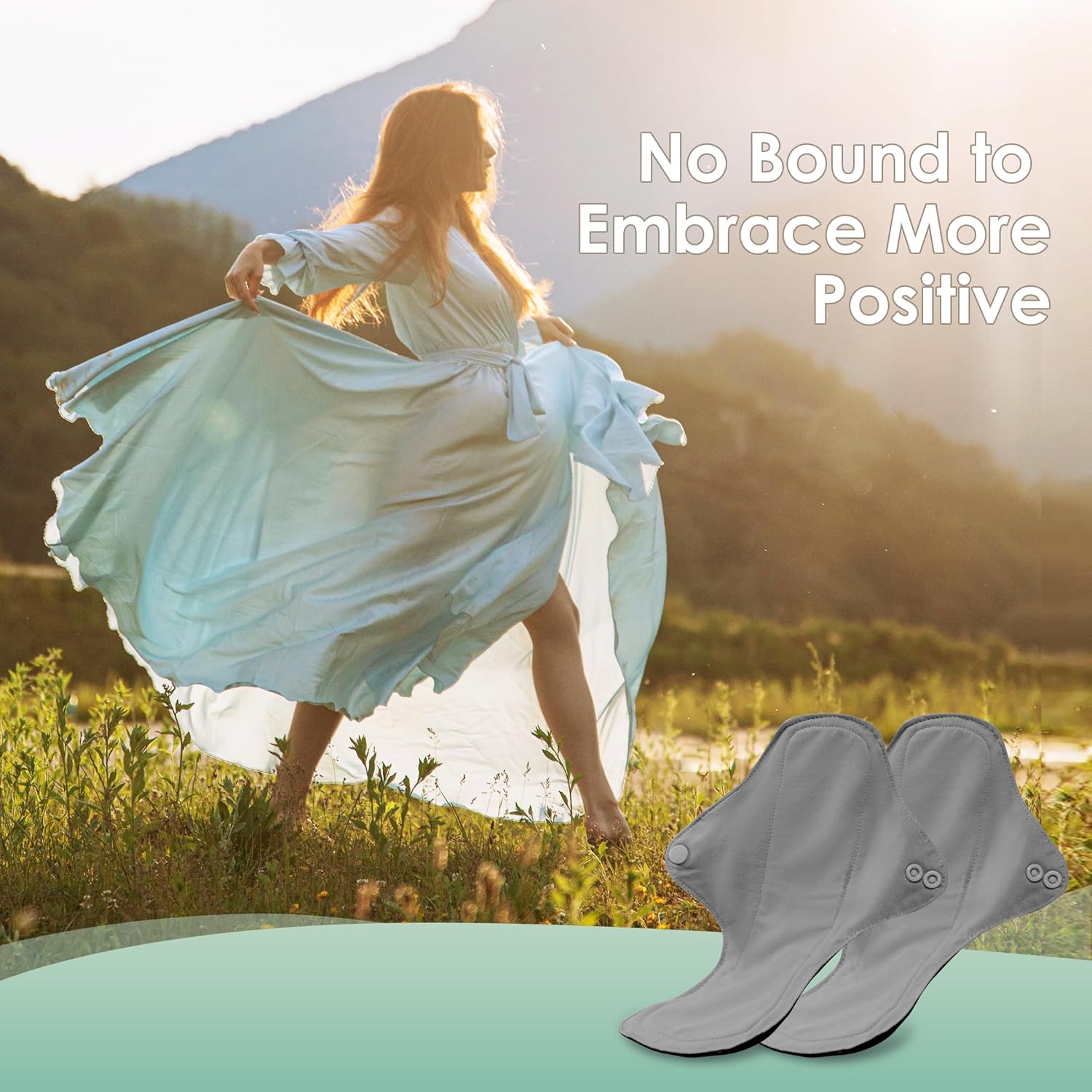 wegreeco 6 Pcs Reusable Menstrual Pads, Ultra Absorbent Cloth Pads for Heavy Flow, Sanitary for Teens, Women, Nonslip, Grey Inner, Grey Outer, X-Large