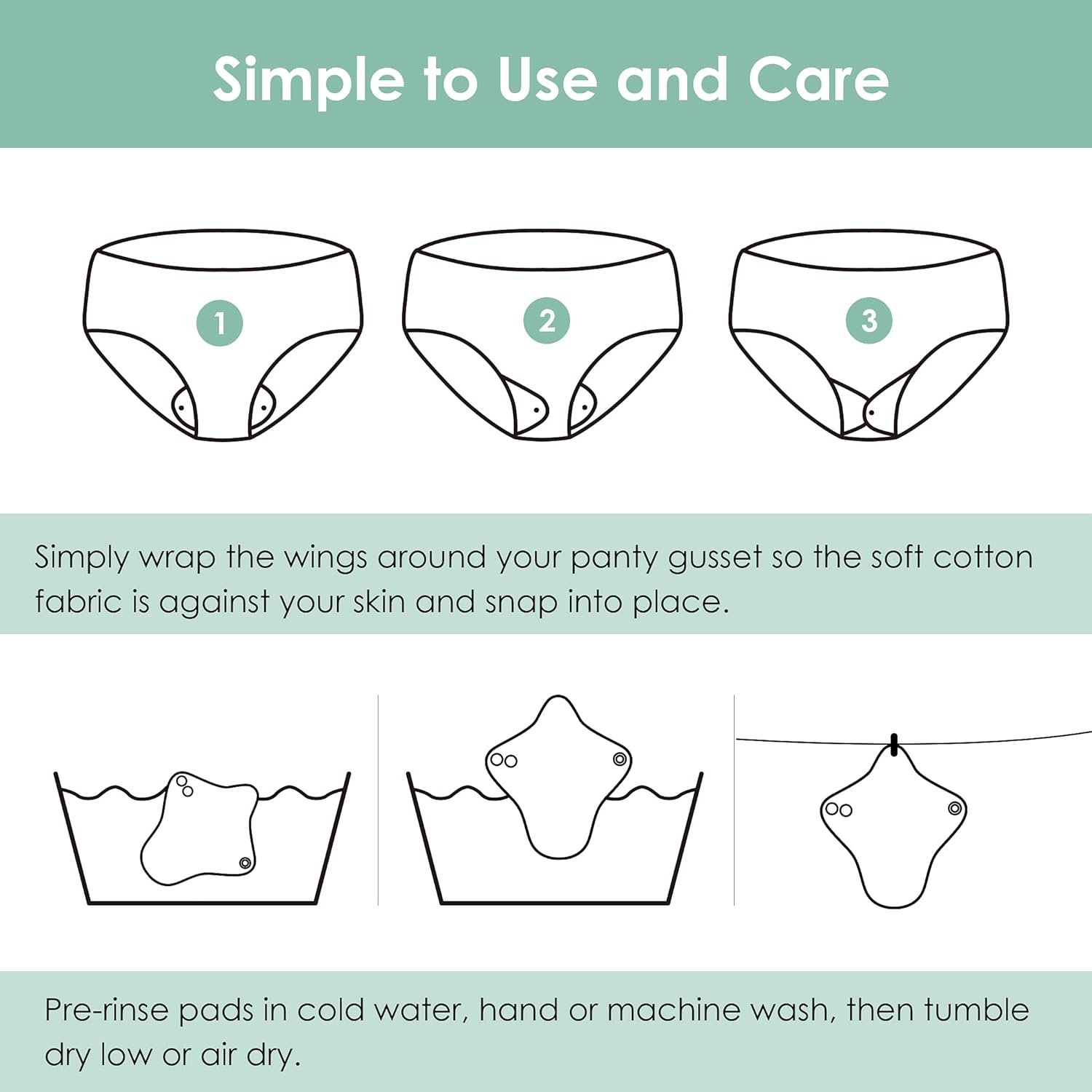 - Multi-Purpose Panty Liners: Our washable pads menstrual are ideal as period panties, postnatal maternity pads or washable light flow cloth urinary incontinence pads for teens, women and men. Great for travel, indoor and outdoor, exercise, or daily use. Washable pads menstrual coming with a leak-free PUL wet bag, the handle with snap is easy for you to carry or hang everywhere. Just use or wash, fold it, nobody will know what it is, no more embarrassing