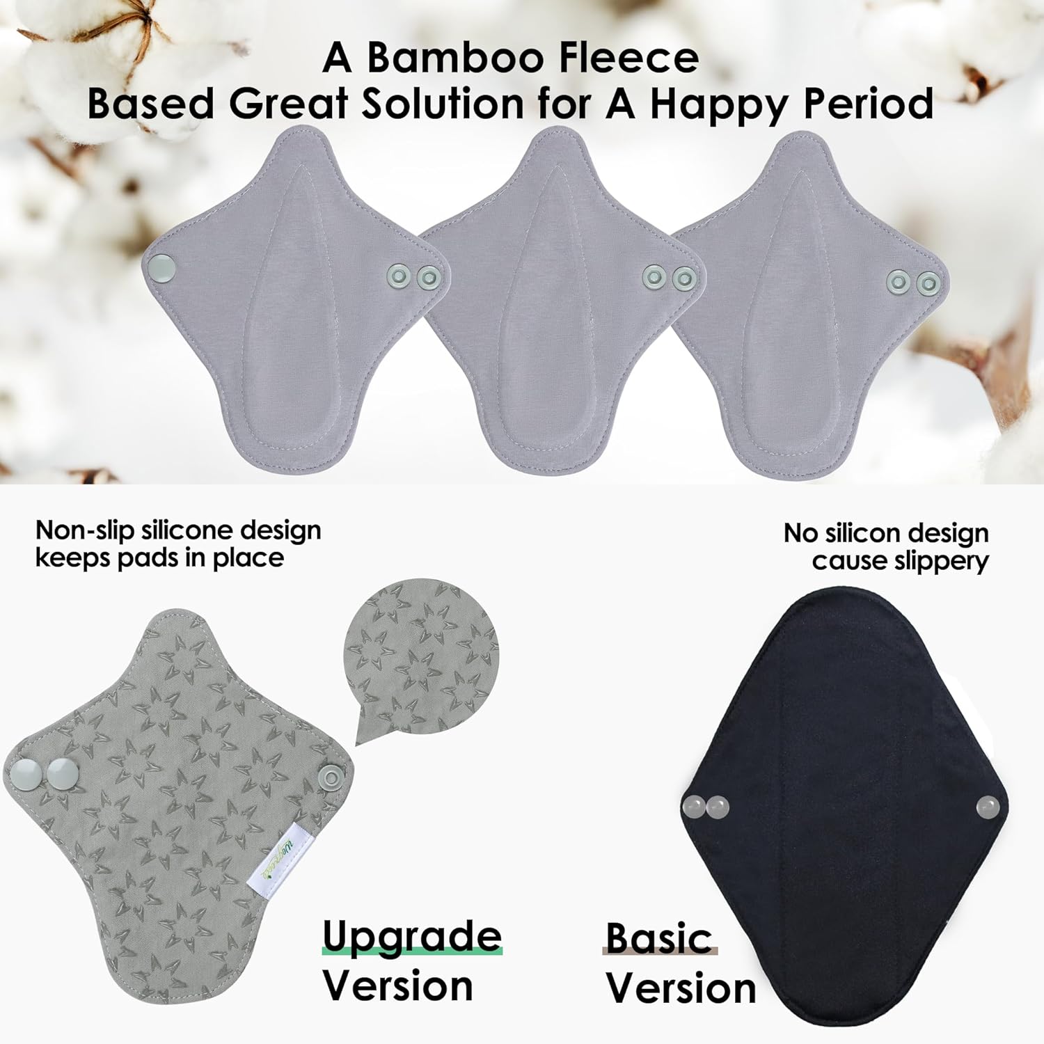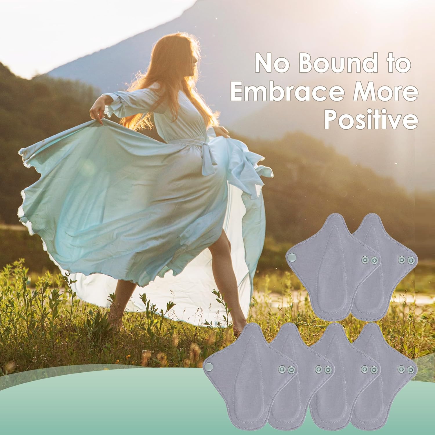 wegreeco 6 Pcs Reusable Menstrual Pads, Ultra Absorbent Cloth Pads for Heavy Flow, Sanitary for Teens, Women, Nonslip, Grey Inner, Grey Outer, X-Small