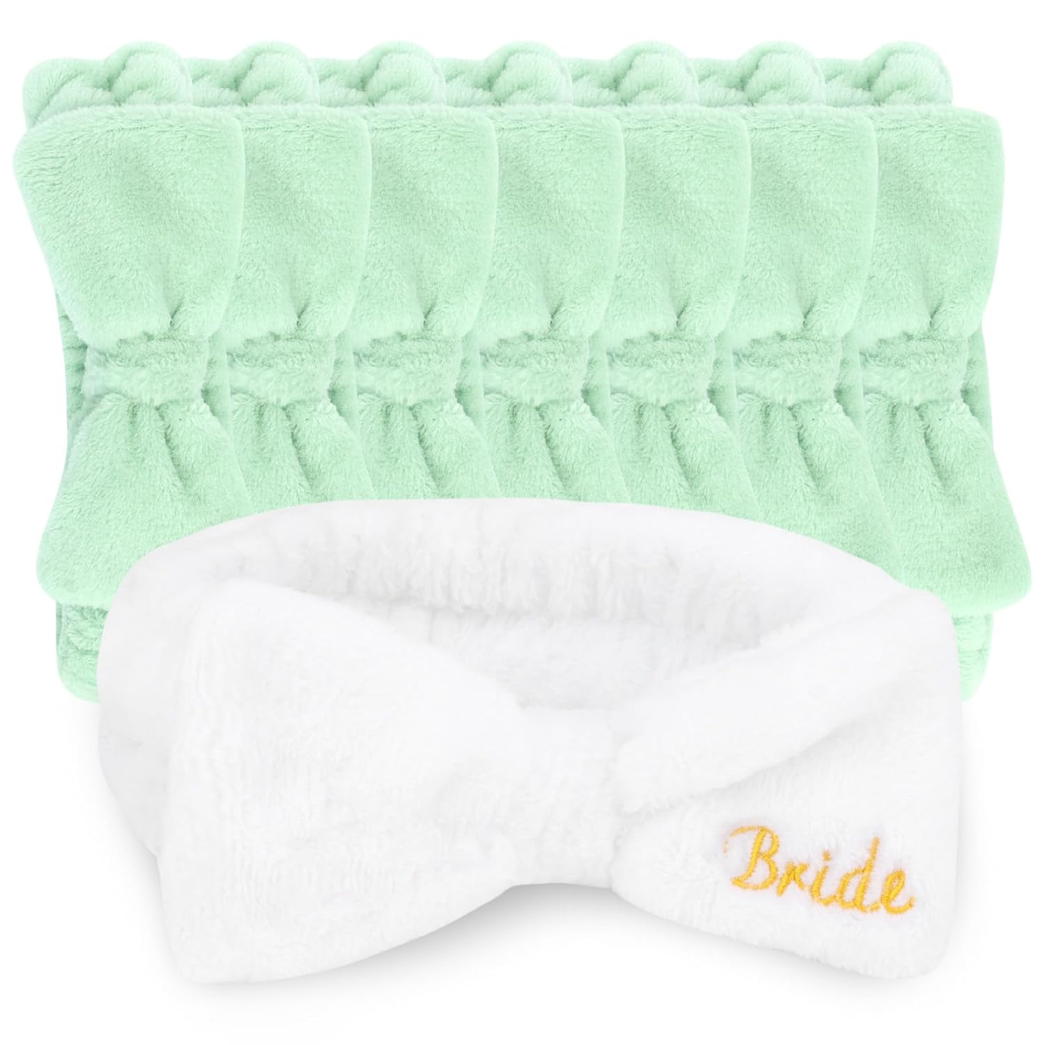 - π The perfect bachelorette themed party favors: 1 white bridal spa headband +7 green bridesmaid spa headbands.