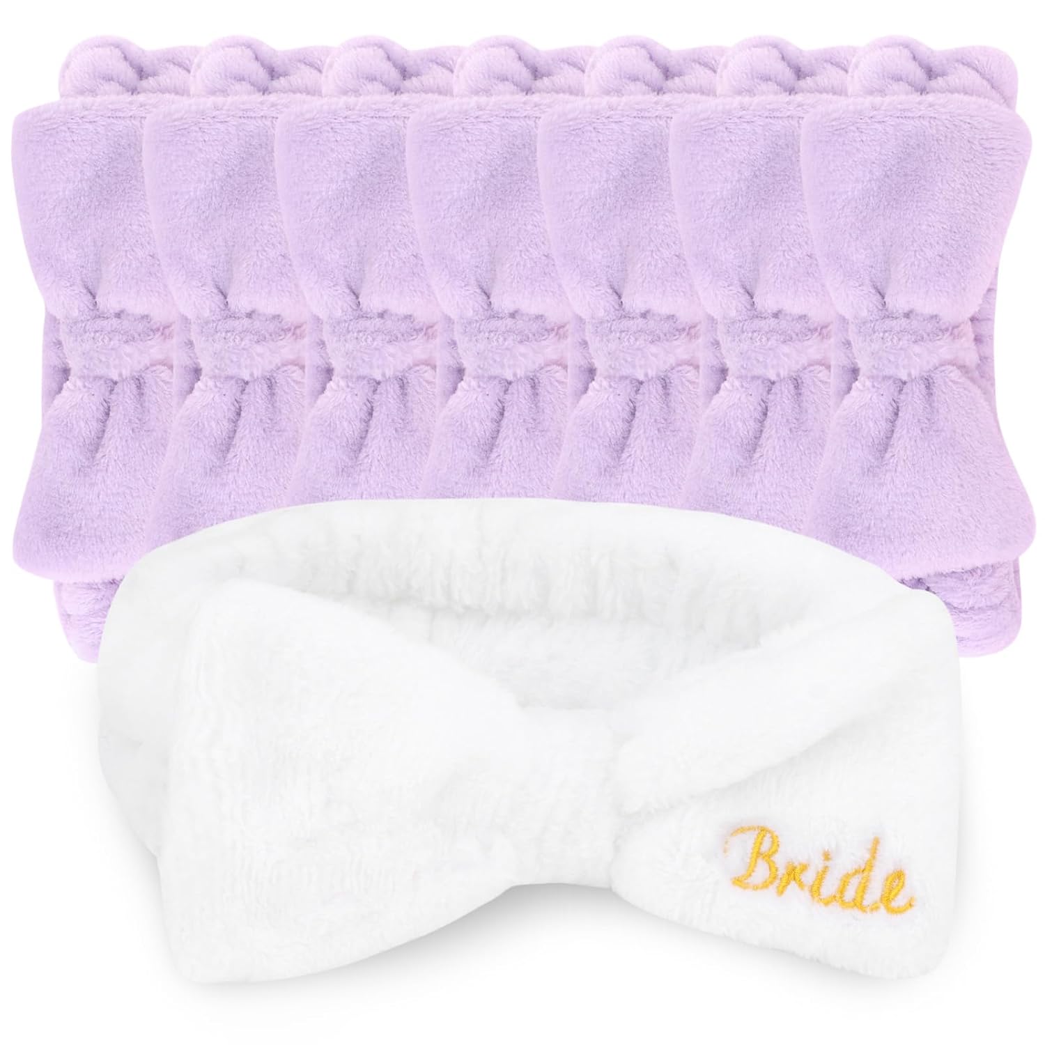 - π The perfect bachelorette themed party favors: 1 white bridal spa headband +7 purple bridesmaid spa headbands.