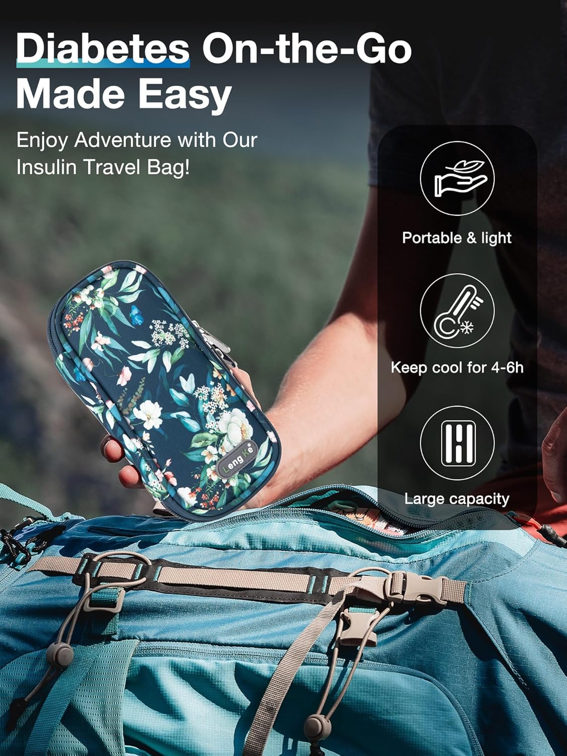 Insulin Cooler Travel Case, Insulin Pen Cooler, TSA Approved, Camellia Blue, Floral