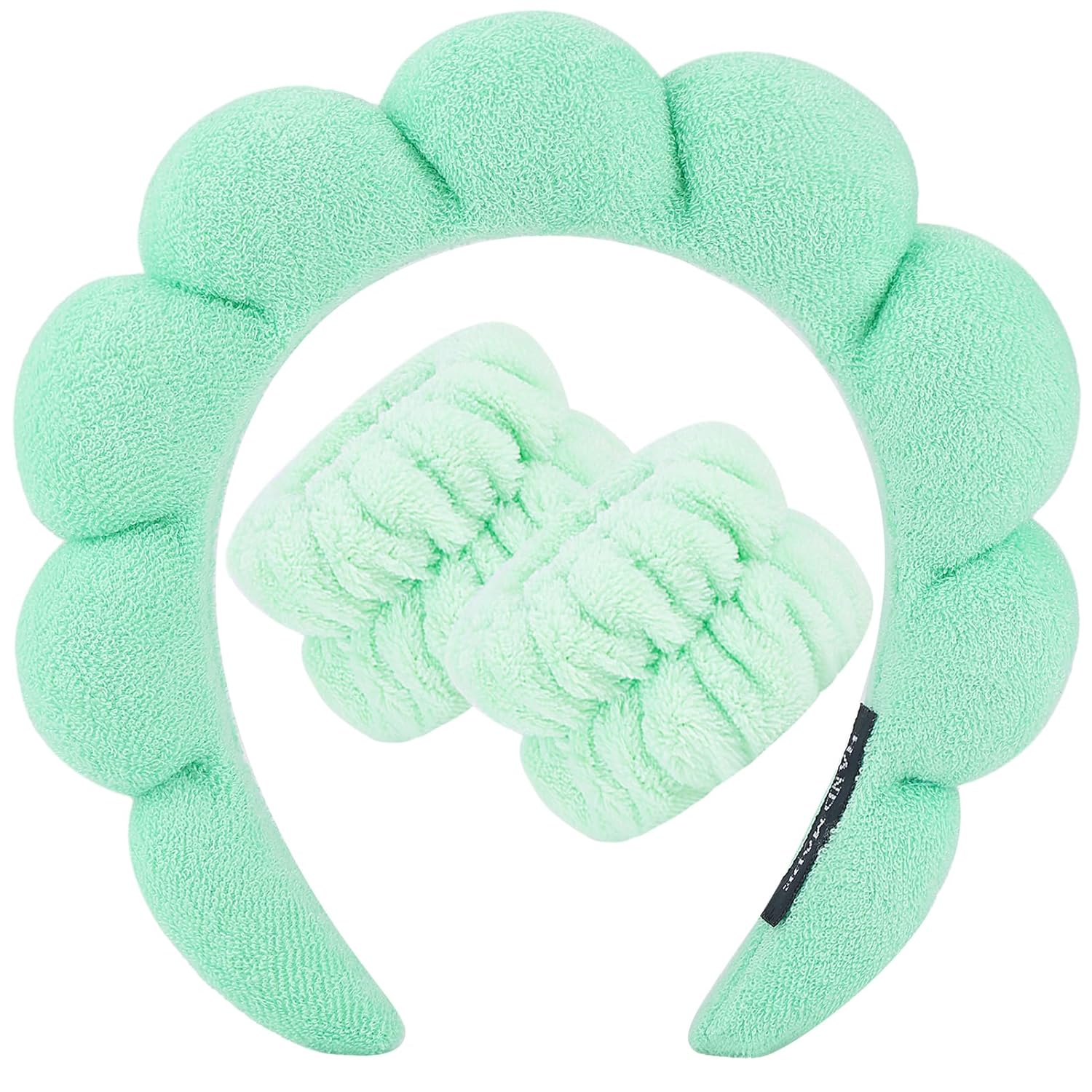 Zkptops Spa Headband for Washing Face Wristband Set Sponge Makeup Skincare Headband Wrist Towels Bubble Soft Hairband for Women Puffy Headwear Winter Non Slip Thick Thin Hair Accessory(Light Green-3)