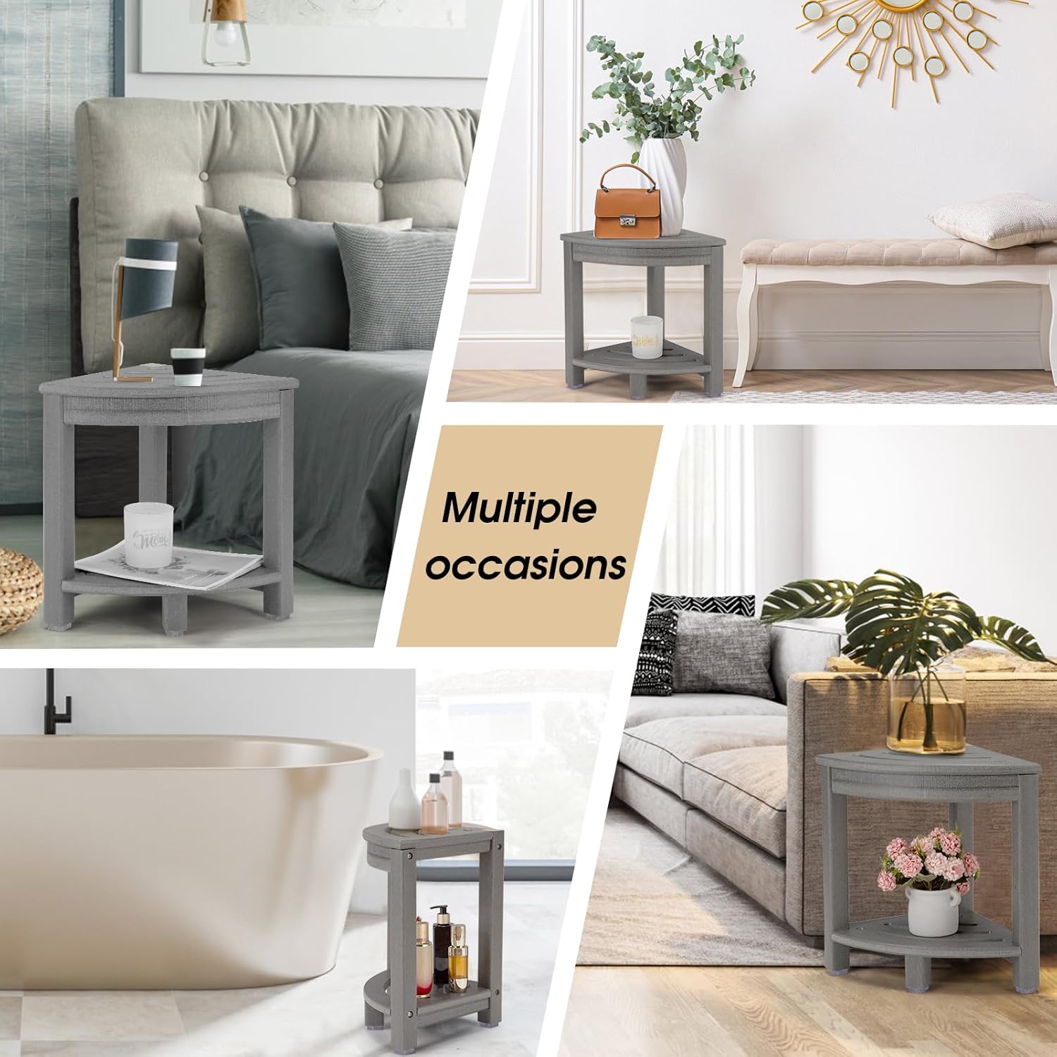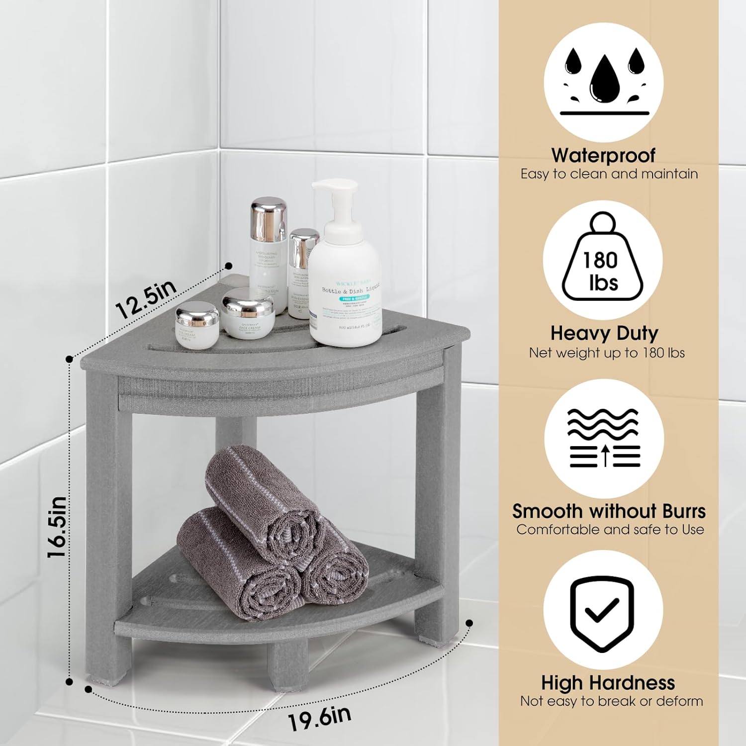 HDPE Corner Shower Stool,Shower Bench Seat with Storage Shelf for Shaving Legs Plastic Spa Bath Step Foot Rest for Bathroom Small Place (Grey)