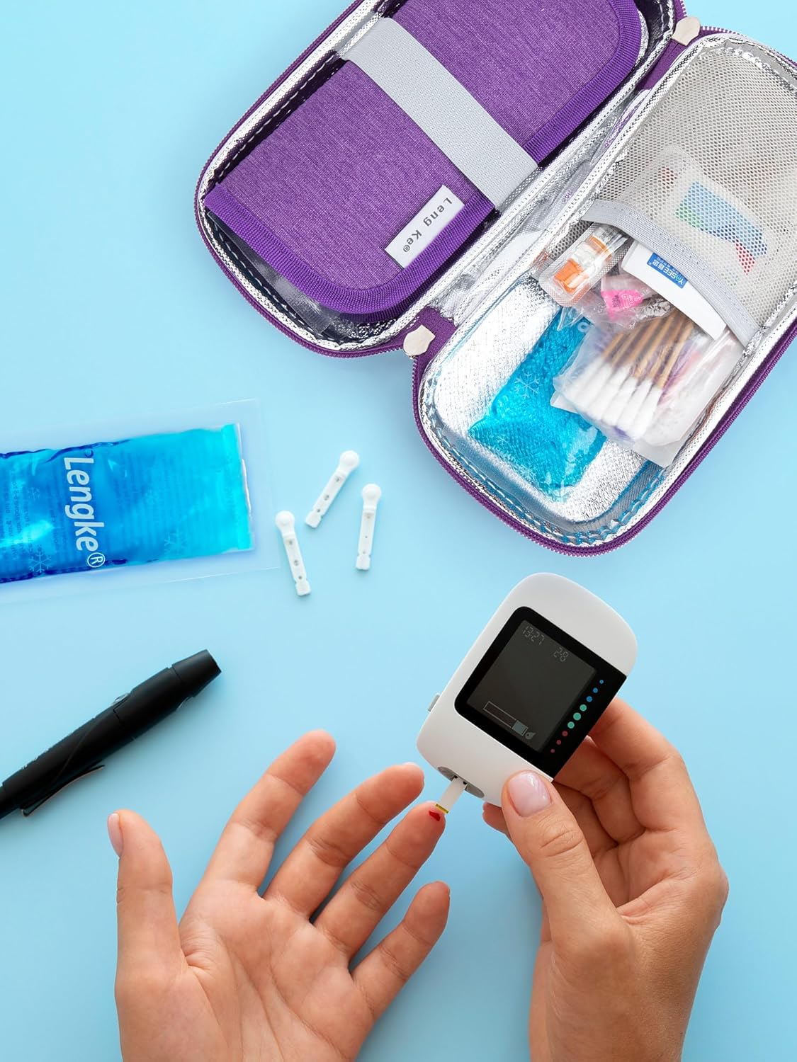 - [Friendly Reminder] - Before planning to travel, you can put the insulin syringe, insulin needles, prepared alcohol wipes, insulin pens, insulin syringes and other diabetic supplies in the insulin cooler travel case, and then put the ice pack in the corresponding storage compartment, so that you can travel easily without worrying.