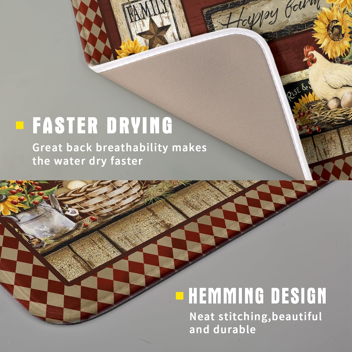 Vintage Rooster Dish Drying Mat 16x18 Inch Farmhouse Chicken Dish Drainer Pad Microfiber Absorbent Fast Dry Kitchen Counter Accessories
