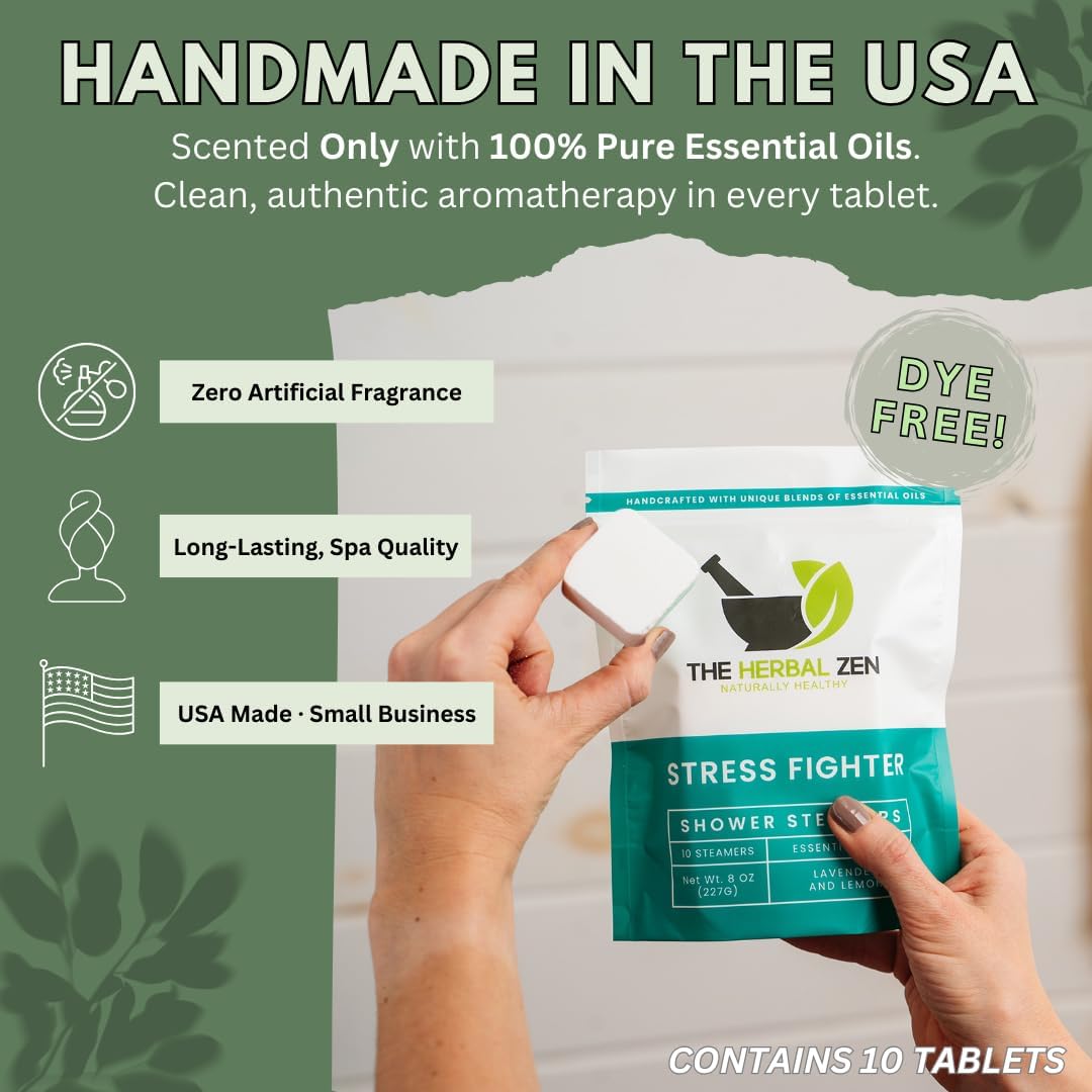 - AT HOME SPA EXPERIENCE: Transform your daily shower into a calming self-care ritual with Herbal Zen Shower Steamers. Infused with 100% pure essential oils, our shower melts deliver a luxurious spa experience—right in your own bathroom. Affordable, convenient, and soothing.