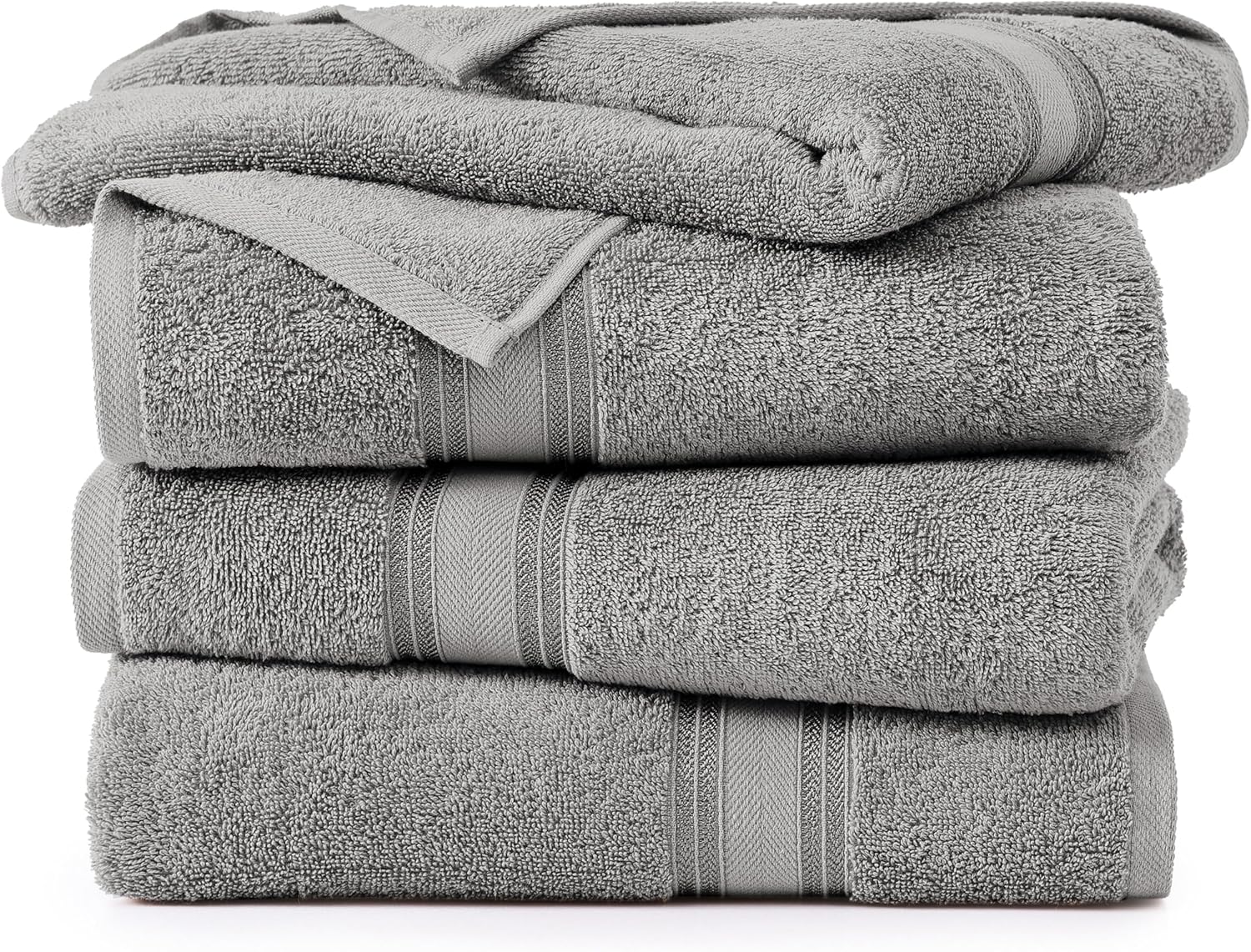 LANE LINEN 100% Cotton Bath Towels Set of 4 (28"x54") - Zero Twist, Mercerized Cotton Extra Large Bathroom Towel Sets - Quick Dry, Soft & Absorbent Grey Towels Set - Pre Shrunk, Fade Resistant - Grey