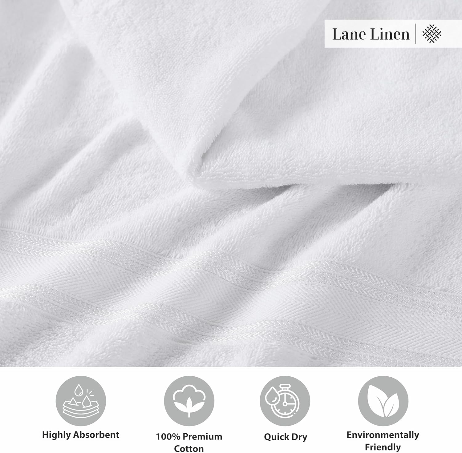 LANE LINEN 100% Cotton 4 Pack Bath Towels (30"x60") - Zero Twist, Cotton - Large Towels for Bathroom - Quick Drying, Highly Soft & Absorbent Shower Towel Set - Hotel & Spa Quality - White Towel Set