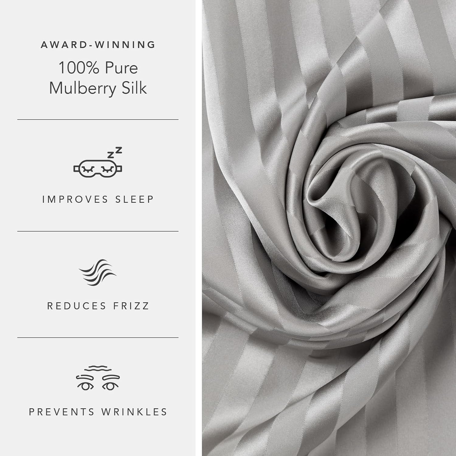 - BEAUTY BENEFITS: 100% Pure Mulberry Silk has been tested and proven to Prevent Wrinkles, Regulate Sleep Temperature & Protect Hair Damage.