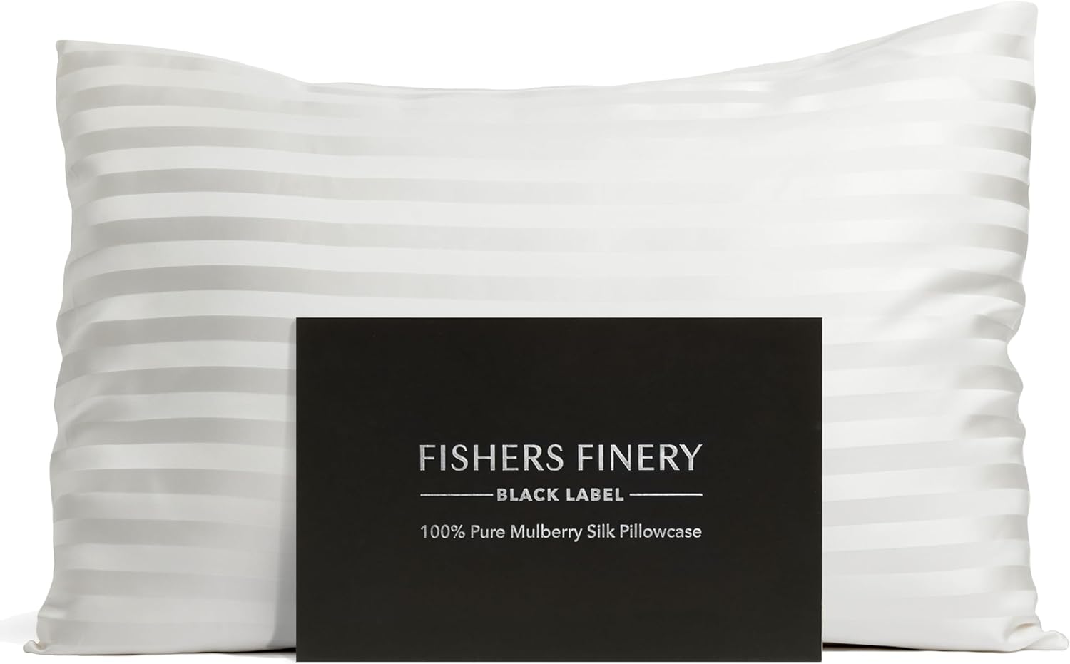 Fishers Finery 30mm 100% Pure Mulberry Silk Pillowcase, Quality Tested (White Stripe, King)