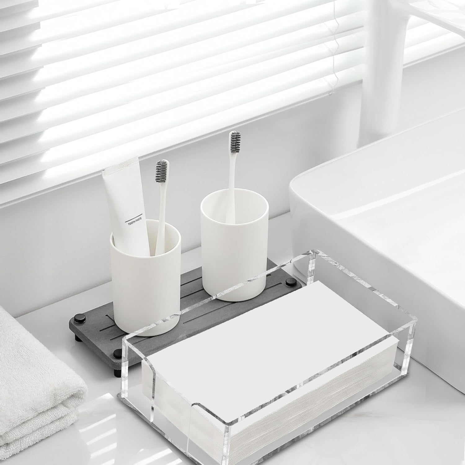 Fengzhe Acrylic Guest Towel Napkin Holder, Clear Bathroom Paper Hand Towels Storage Tray, Disposable Paper Towel Holder for Bathroom, Kitchen, Parties, Weddings, and Various Events .8.5''x4.9''x2.4''