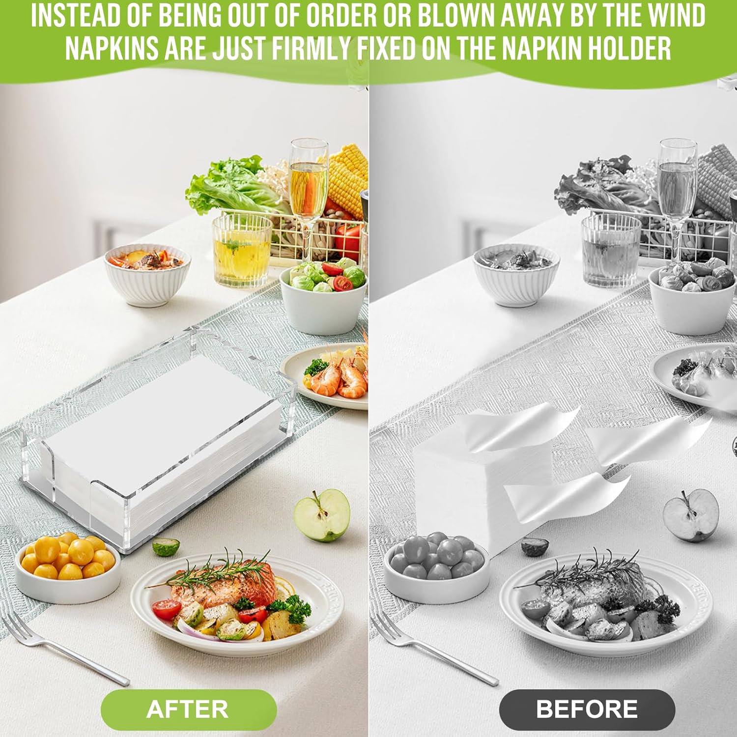 - Versatile Application: This napkin holder is suitable for storing both paper and cloth napkins, catering to various occasions such as kitchens, restaurants, hotels, bars, parties, and picnics. Additionally, it can accommodate notes, memos, letters, towels, providing a broader range of practicality and convenience.