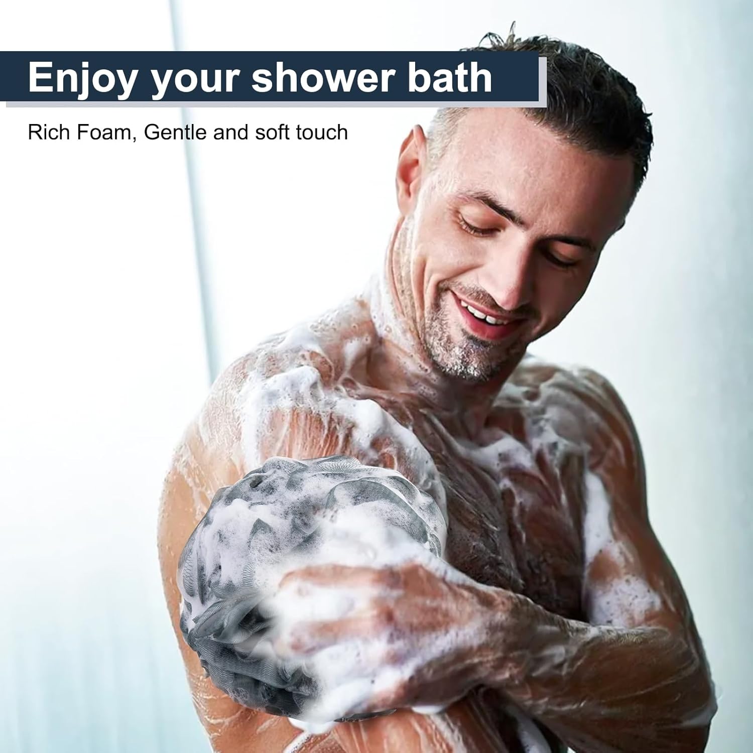 Loofah Sponge XXL-100g 4 Pack, Bath Sponge Soft Mesh Shower Puff Loofah for Men, Exfoliating Body Scrubber for Women, Shower Accessories (Blue Gray)