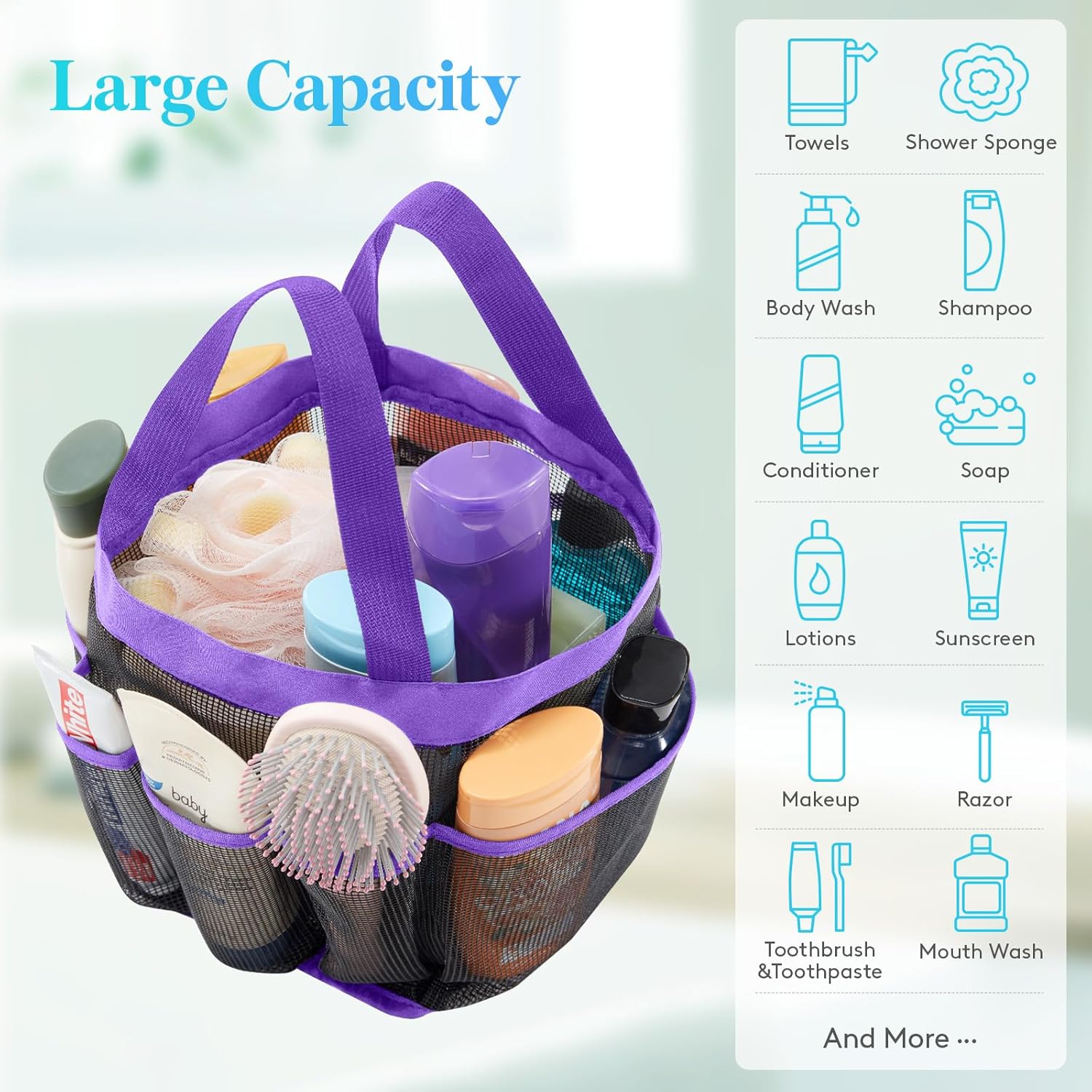 Lifewit Mesh Shower Caddy Freestanding Portable Shower Tote Bag for College Dorm, Bathroom, Gym, Travel, Quick Dry Hanging Organizer with 7 Storage Pockets for Toiletry Essentials,Purple