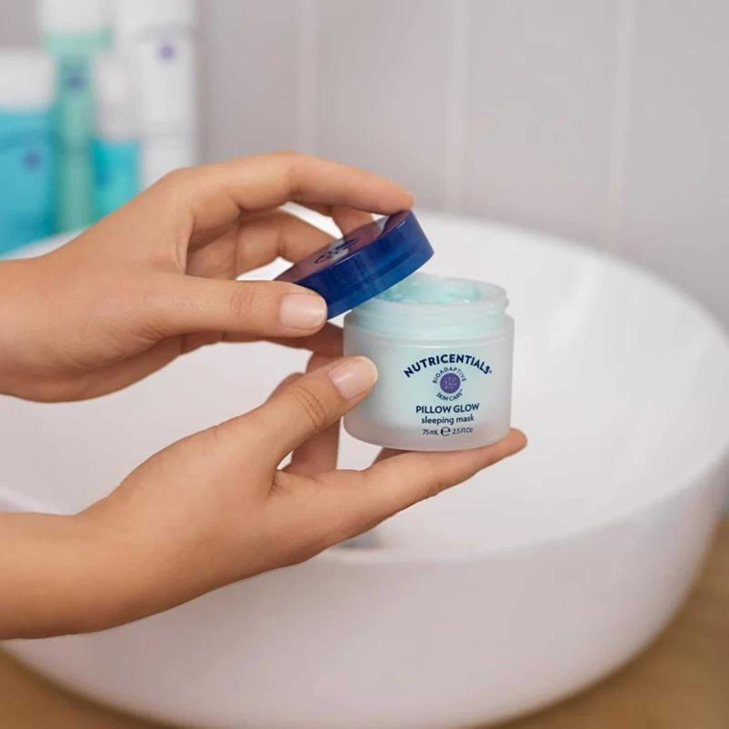 NuSkin NUTRICENTIALS Pillow Glow Sleeping Mask | Overnight Hydration | Bioadaptive Botanical Complex | Red Algae | Apple Extract | Deep Sea Water | Skin Glowing & Pore Minimizing | 2.5 Fl Oz | 1 Pack