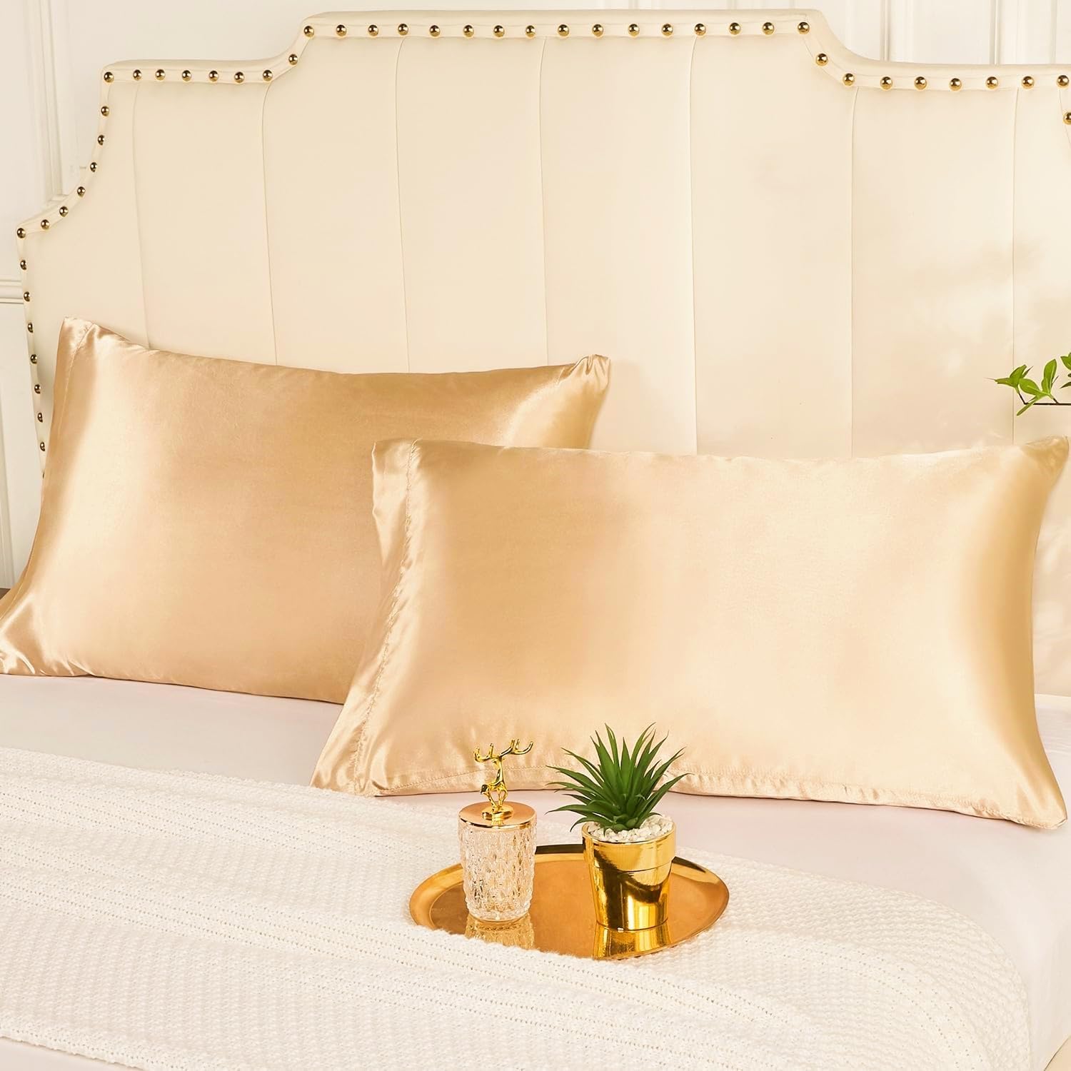 Satin Silk Pillowcase for Hair and Skin, Black Pillow Cases Standard Size Set of 4 Pack Super Soft Pillow Case with Zipper Closure (Champange, Standard(4 Pack))