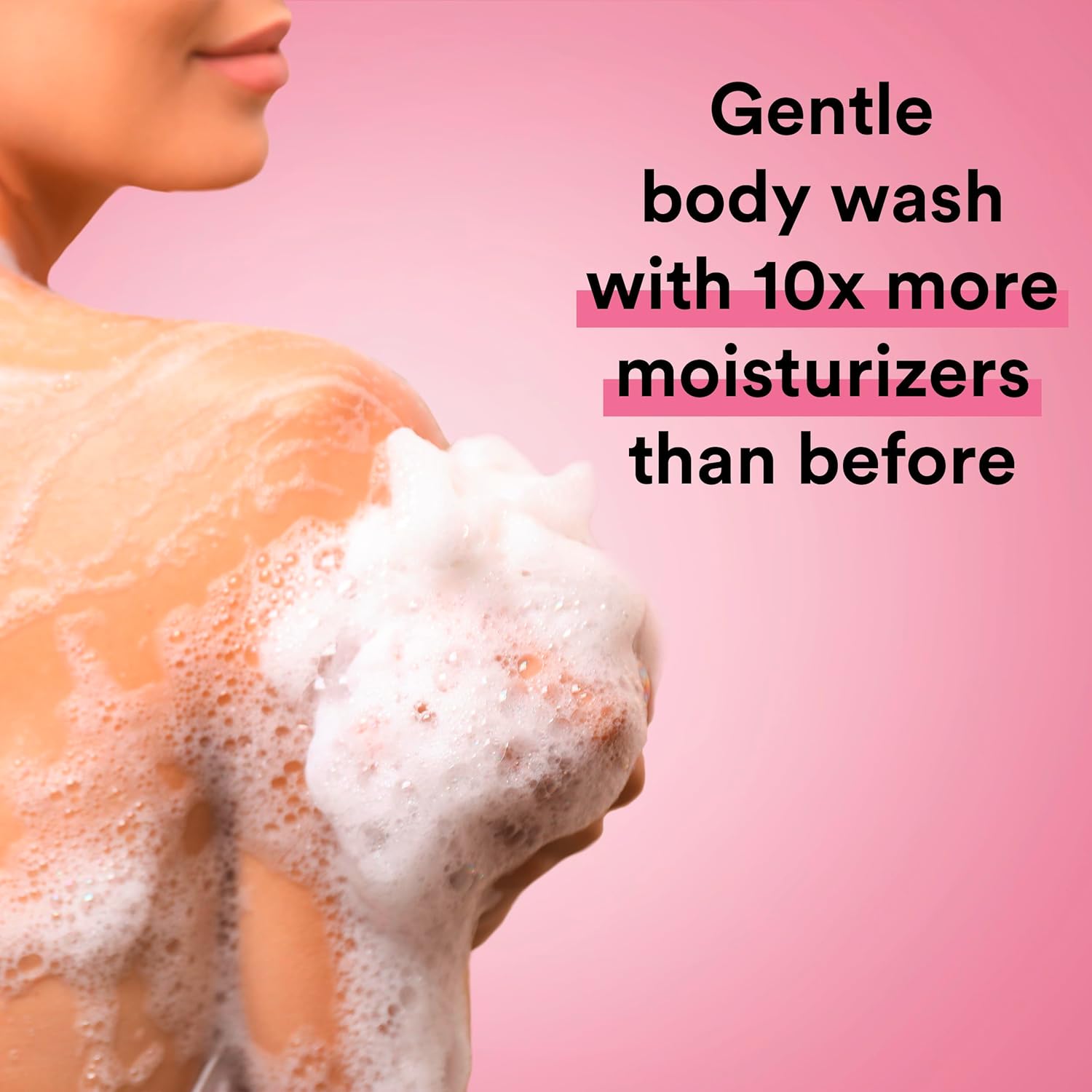 - Now with 10x more moisturizers than before! This body wash and skin cleanser, with Vitamin E, will leave you feeling fresh and pampered long after you shower.