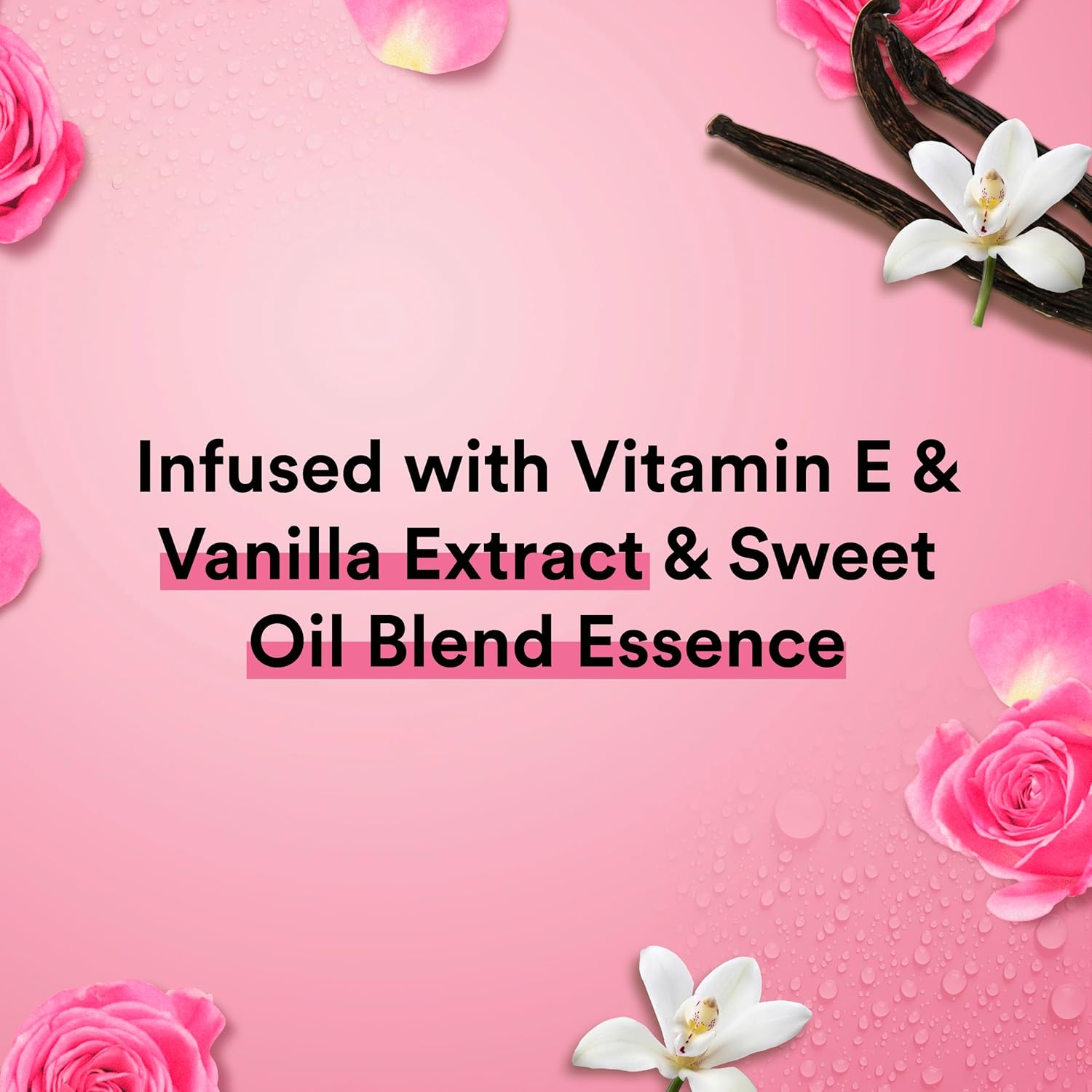 - Say hello to your new guilty pleasure! The long-lasting scent of vanilla cream and sparkling rose with jojoba oil awaits you with this gentle skin cleanser.