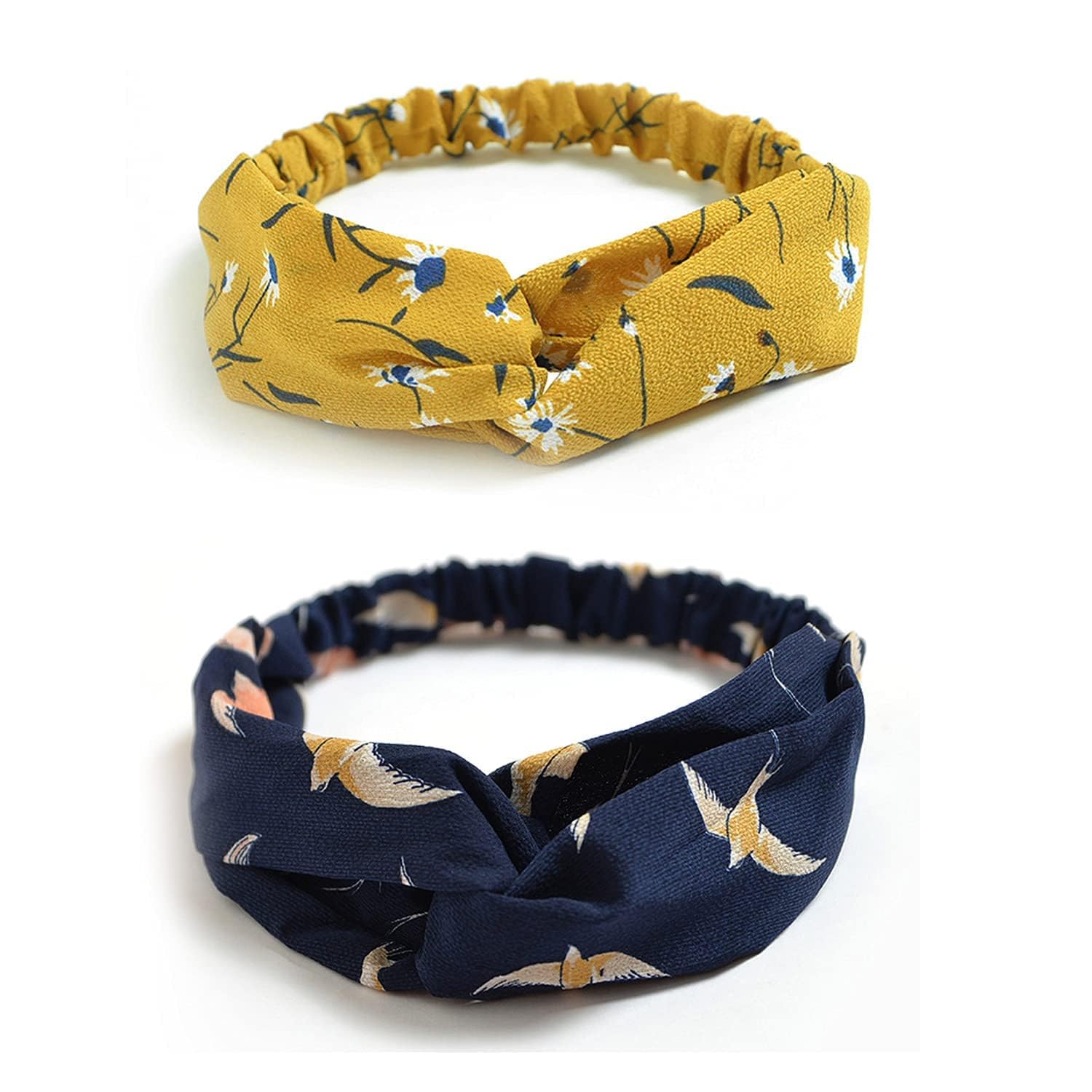 - DELICATE HIGH QUALITY -- This wonderful headband features a back elastic band for an easy fit while the fabric crosses in front to create an adorable knotted style. Bright-colored and vintage flower printing in silk or chiffon and no smell and no fade. Wear it however you dare!