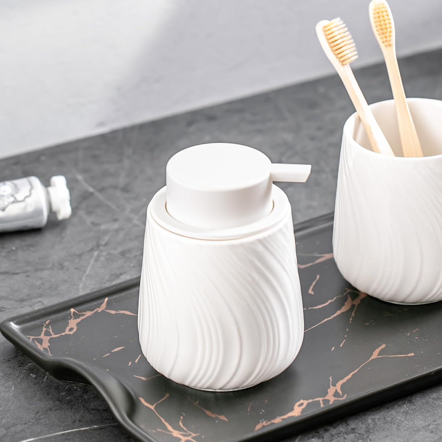 - Ceramic Foam Soap Dispenser: Made of high-quality ceramic, naturally lead-free, can be filled with a variety of daily use foam lotion, or liquid lotion (diluted with water).
