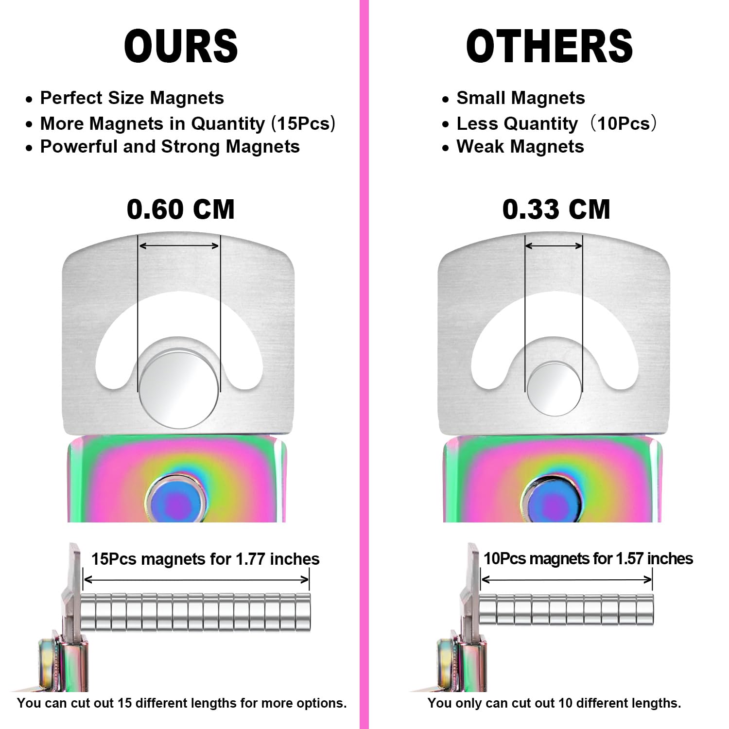 - Powerful Magnet Sizers -- Easiest nail hack to get your tips the same length in secons!Our magnets have a total length of 1.6 inches, the height of each pcs is 0.12 inches, you can adjust the desirable length by using different numbers of magnets.If you are worried that the magnets will move, you can fix the first magnet with glue on the clipper