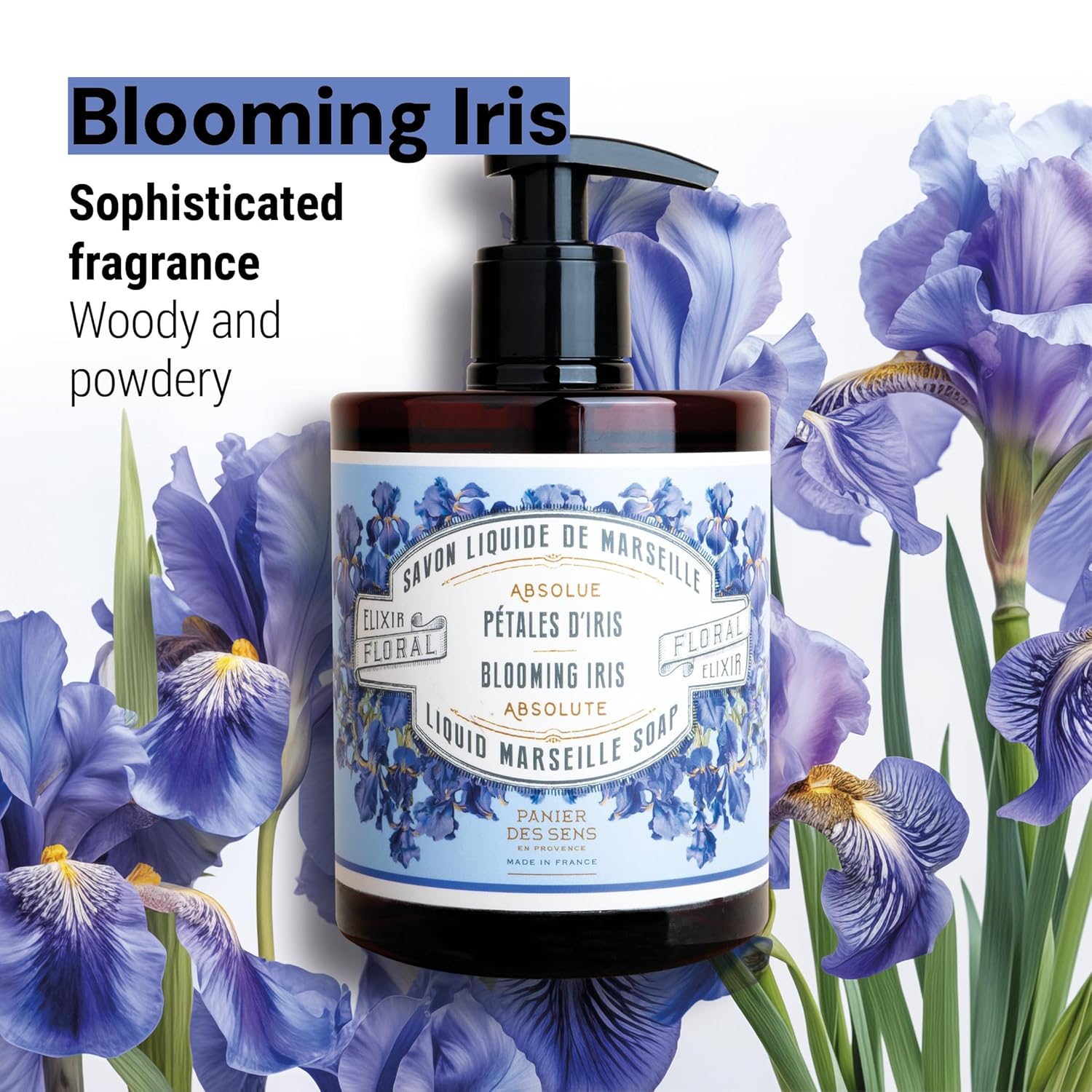 - IRIS SCENTED HAND SOAP - A natural hand soap with a powdery, sophisticated floral fragrance thanks to the perfume's Absolute. This foaming soap soap reveals musky, woody accents of cedar and violet to create an unforgettable signature, a perfect marriage of floral grace and woody warmth.