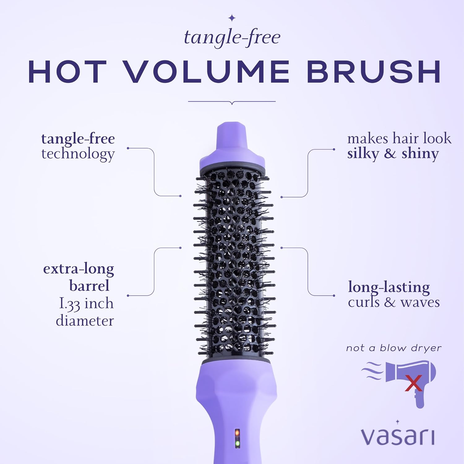 - π TANGLE-FREE STYLING β This curling iron brush has extra-long bristles that grab and gently glide through the hair. No more painful catching and tugging.