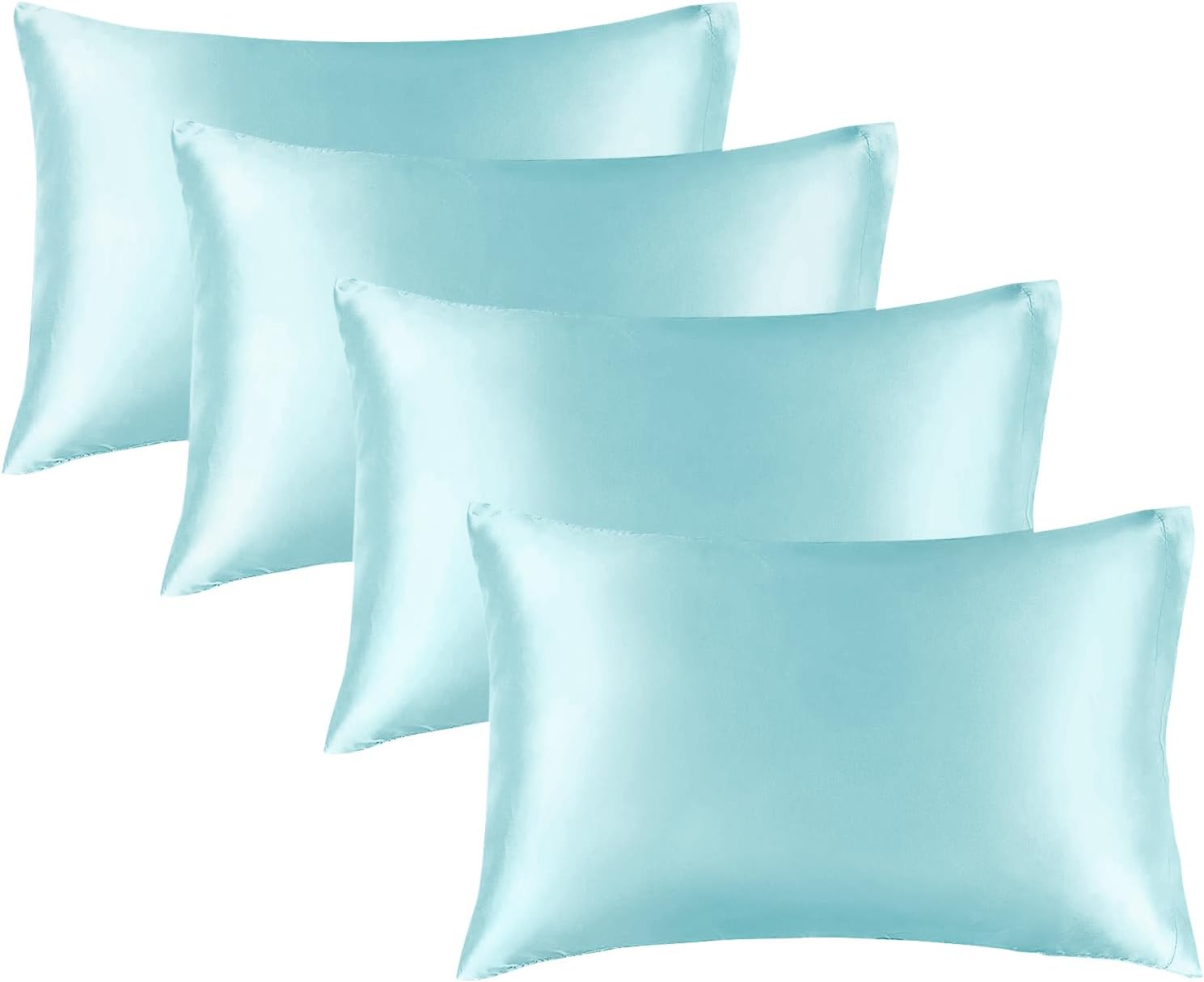 BEDELITE Satin Pillowcase for Hair and Skin, Super Soft Similar to Silk Pillow Cases 4 Pack with Envelope Closure, Cooling Pillowcases for Women Men (20"x26" Standard Size, Blue)