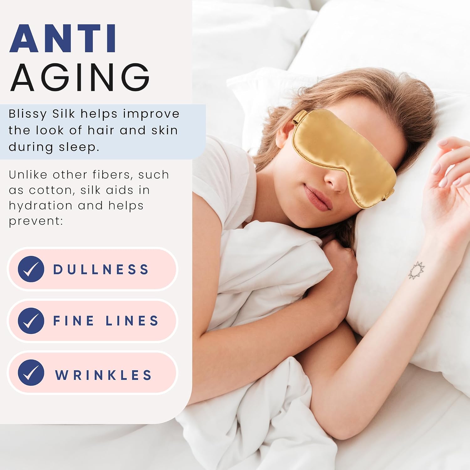 - TOTAL BLACKOUT - If you're looking to completely block out the light, our Blissy Silk Sleep Mask is perfect for you! Made with 100% pure Mulberry silk and 22 momme 6A grade fibers, this mask will keep the light out and help you get a good night's sleep.