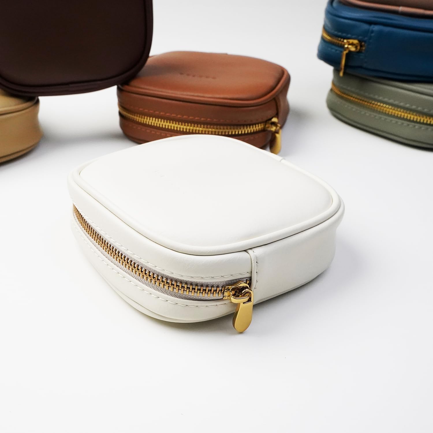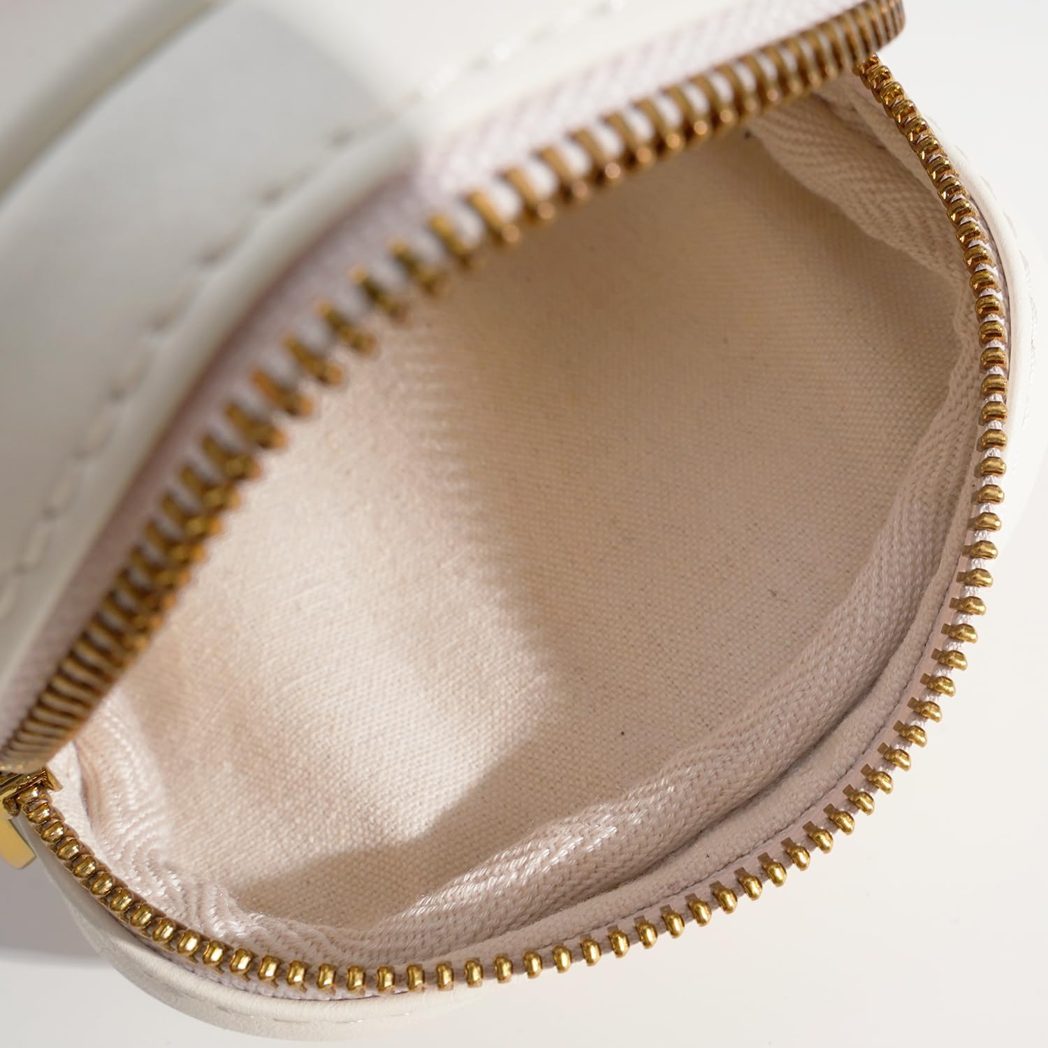 Leather Cosmetic Bag for Women Small Zipper Makeup Bag for Purse Waterproof Travel Makeup Organizer Charger Storage Pouch Color White