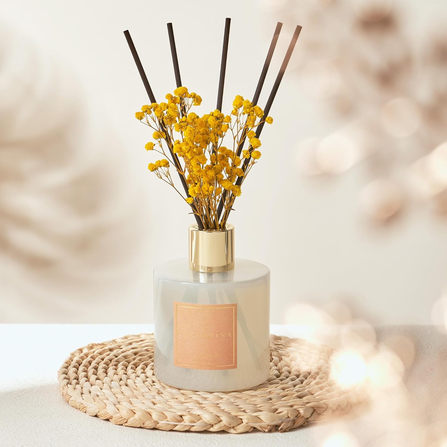 Cocorrína Reed Diffuser - Warm Vanilla Scented Diffuser with 8 Sticks Home Fragrance Reed Diffuser for Bathroom Shelf Decor