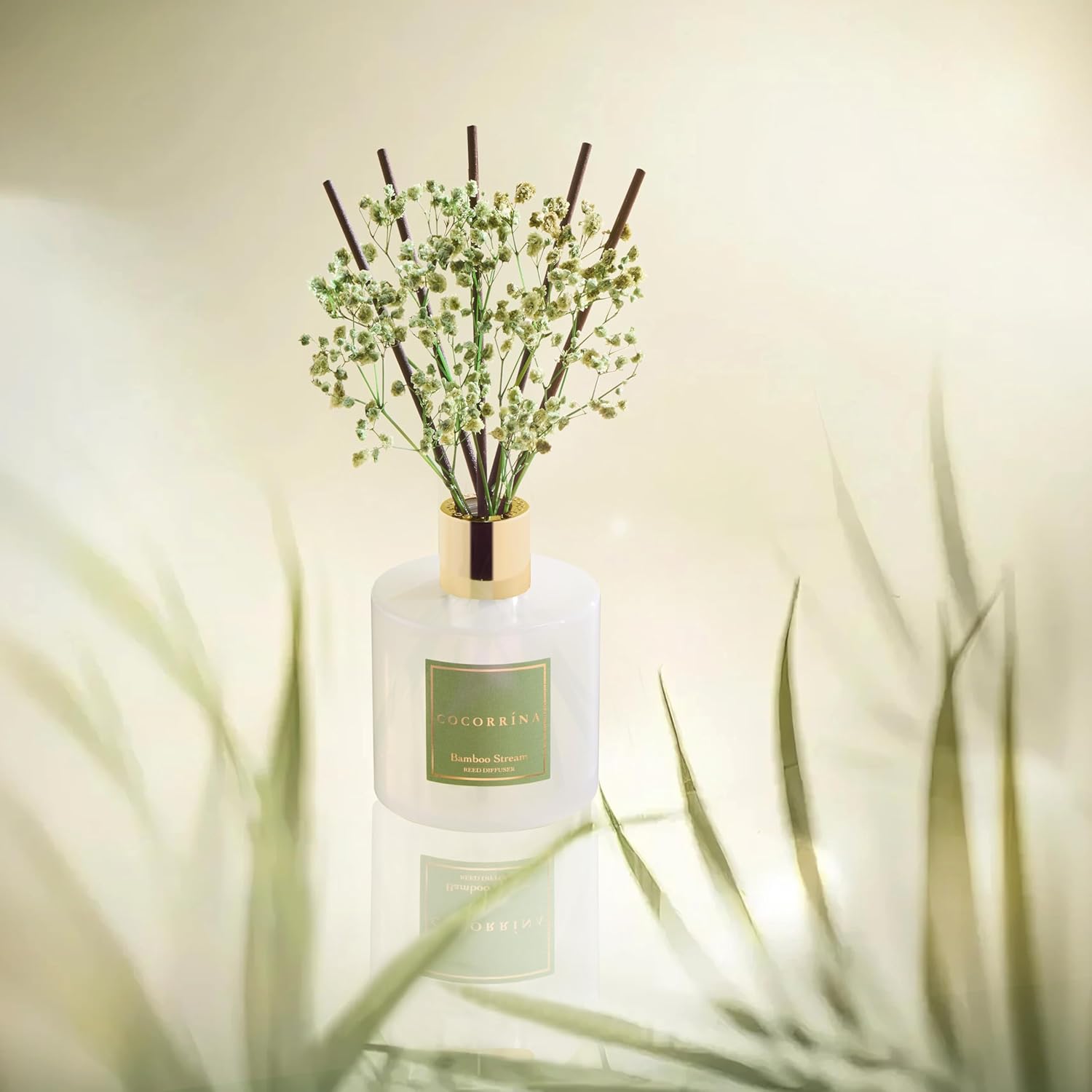 Cocorrína Reed Diffuser - Bamboo Stream Scented Diffuser with 8 Sticks Home Fragrance Reed Diffuser for Bathroom Shelf Decor