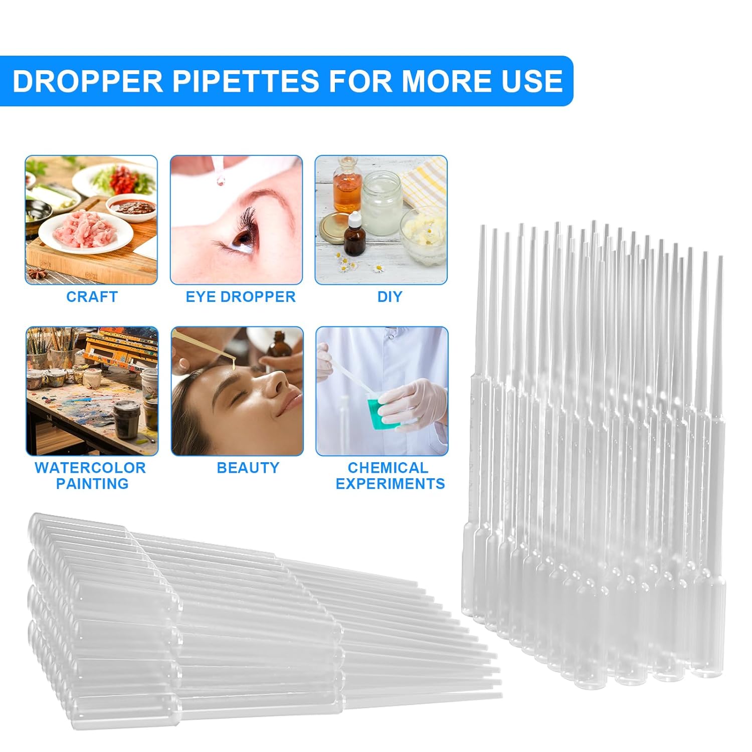 - WIDE APPLICATIONS - Our plastic pipettes are made for multiple uses. Widely used for , essential oil blends, aquariums, eye dropper, feeding pets, crafting DIY, chemical experiments, watercolor painting, etc.