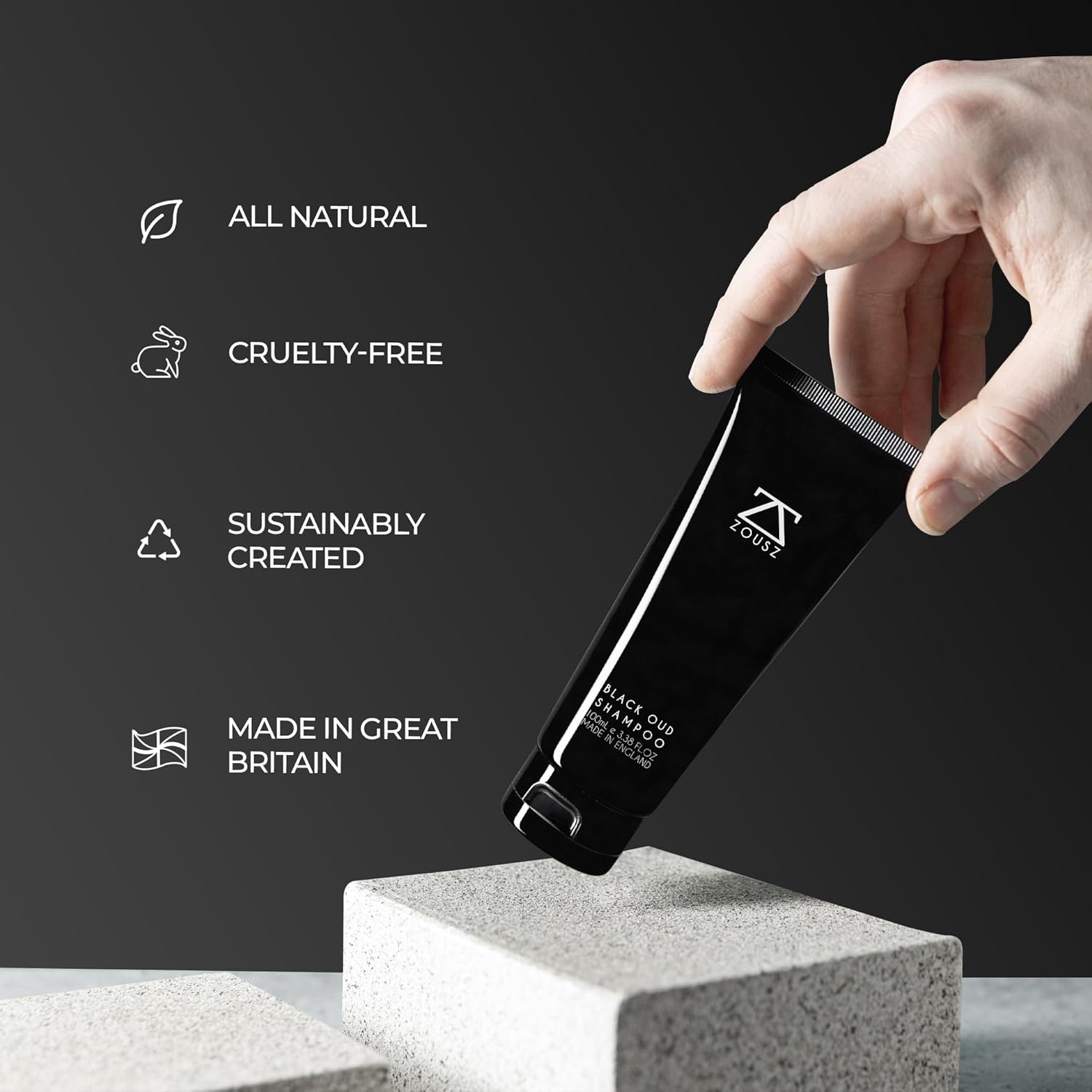 ZOUSZ Black Oud Men's Shampoo, Hair & Beard Cleaner and Strengthener, Vegan & Hypoallergenic Shampoo , 3.38 Fl Oz Hair Shampoo & Beard Wash Kit Essential