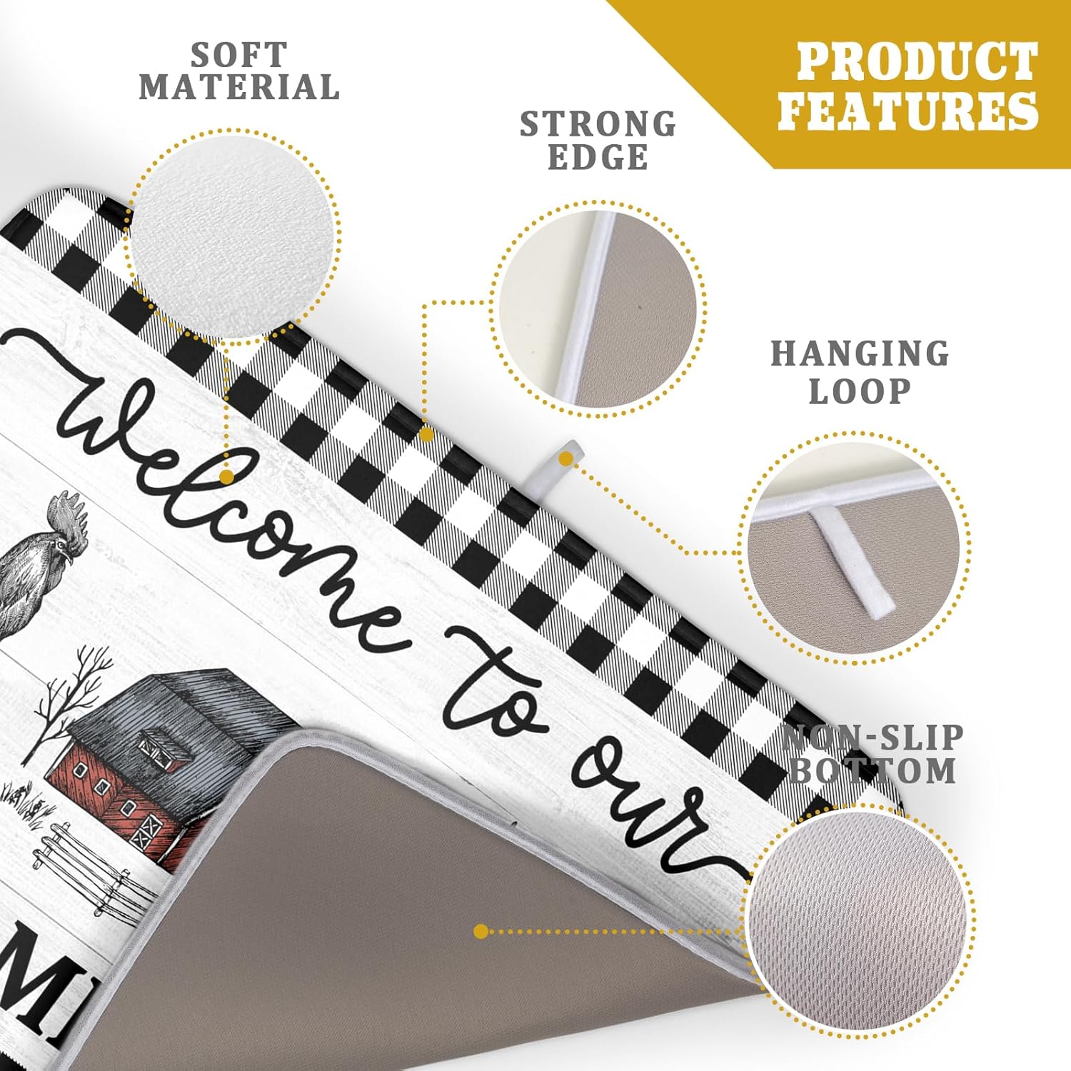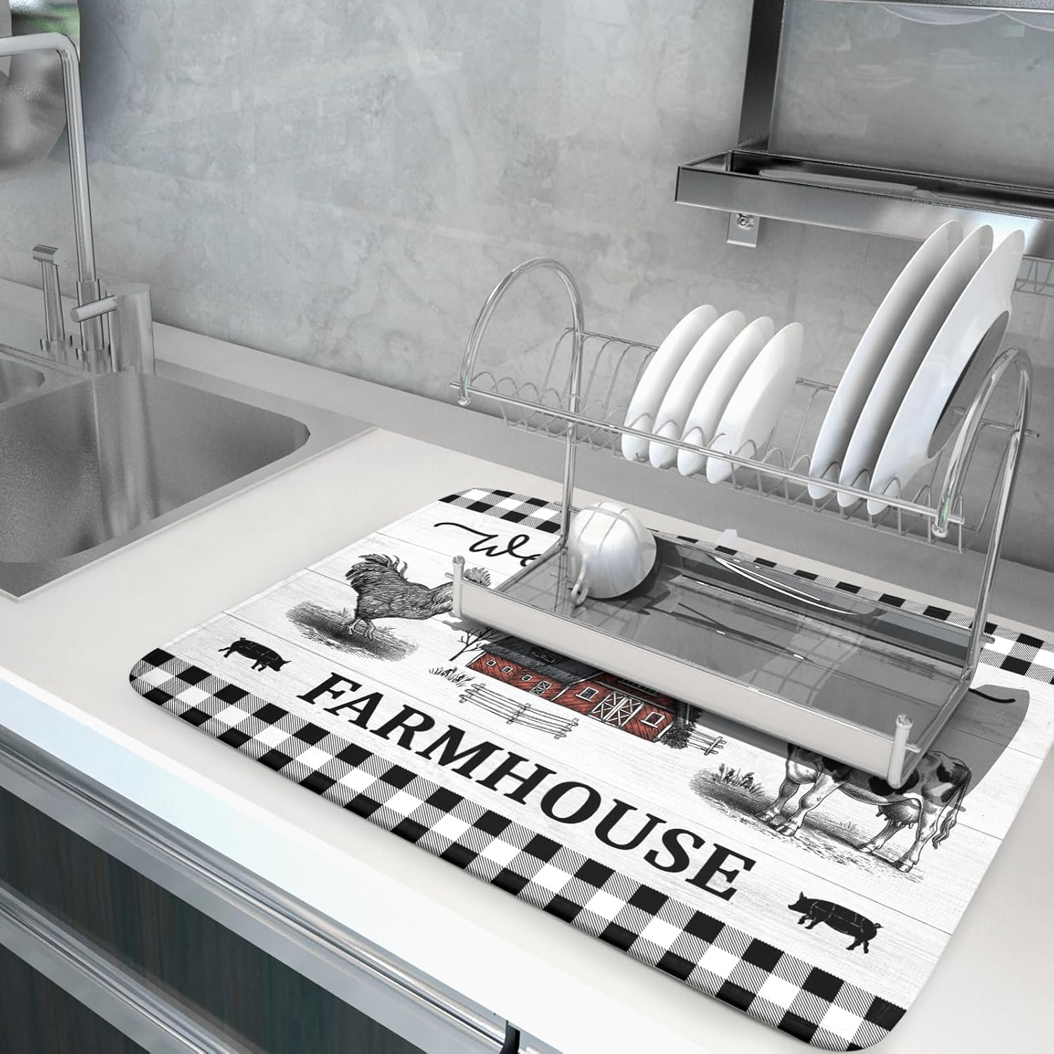 Farmhouse Barn Dish Drying Mat 18x24 Inch Cow Rooster Absorbent Microfiber Dish Drainer Rack Pad Bottles Protector for Kitchen Counter