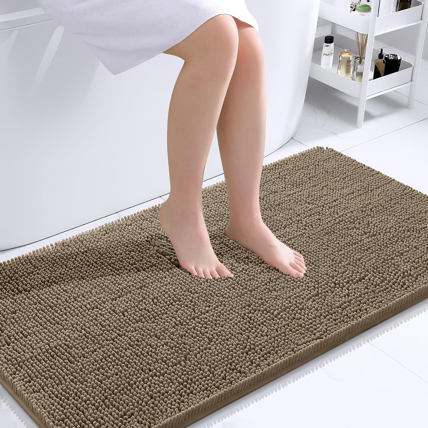 OLANLY Bathroom Rugs 44x24, Extra Soft Absorbent Chenille Bath Rugs, Rubber Backing Quick Dry, Machine Washable Bath Mats for Bathroom Floor, Tub and Shower, Home Decor Accessories, Tan