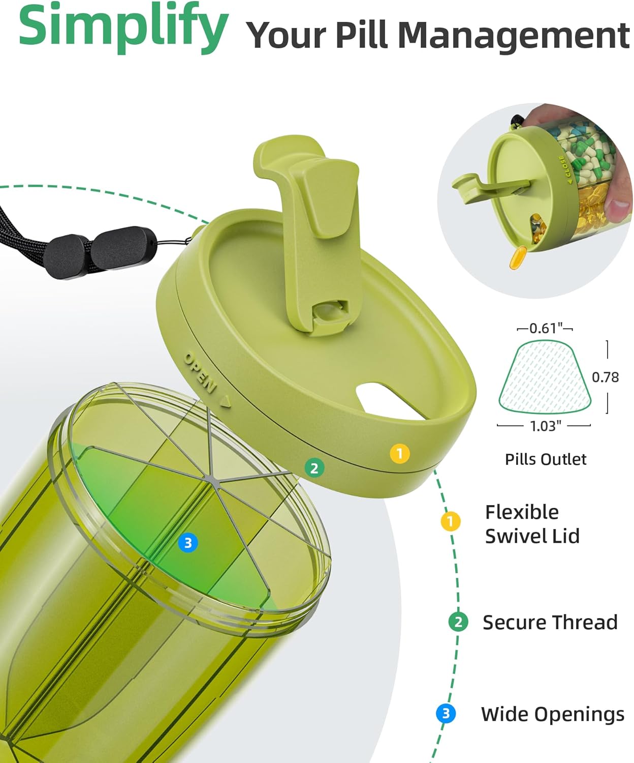 - Easy to Retrieve: The smooth-loosing thread and lid can swivel flexibly, and the wide openings are friendly for taking pills. With the above 3 thoughtful and unique designs, the large pill organizer makes filling and taking medication effortlessly