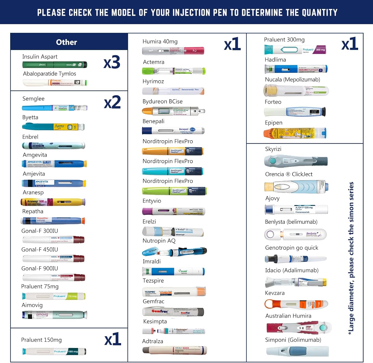 - How many injection pens can I put in : We have obtained the sizes of 95% of the common brands of injection pens on the market and made a detailed capacity reference chart. 1)You can find a table on our page for reference to buy the right cooler. 2) If you can't find your injection pen model, please be sure to contact us, we will be happy to help you solve your problem