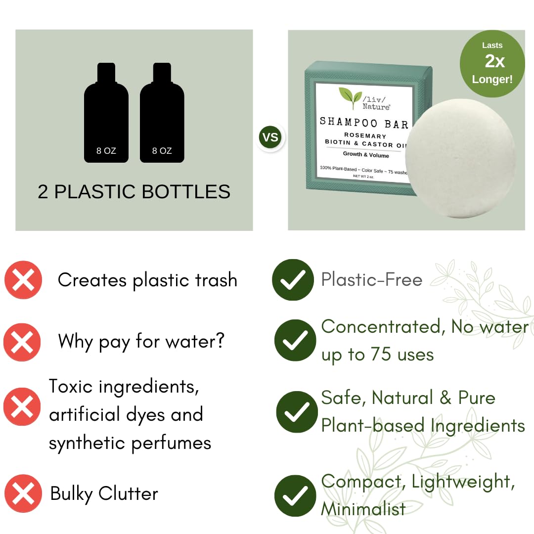 - SHAMPOO BAR FOR GROWTH AND VOLUME: Powerhouse trio, nourishing properties of castor oil, biotin and rosemary, supports healthy hair growth and thickness.