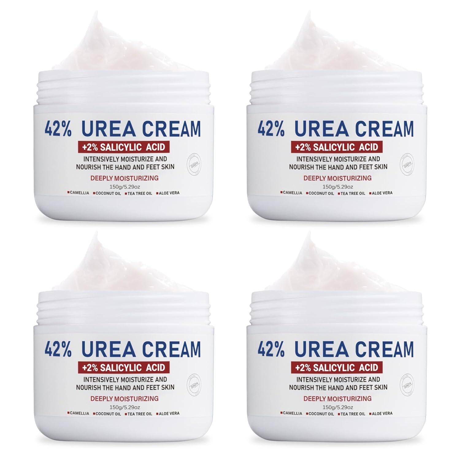 OUKEYA Urea Cream 42% plus Salicylic Acid 2% Net 5.29 Oz for Dry Cracked Feet,Heels,Knees,Elbows,Hands Repair Treatment Moisturizes and Removes Corns,Calluses,Dead Skin,and Softens Toenails Pack of 4