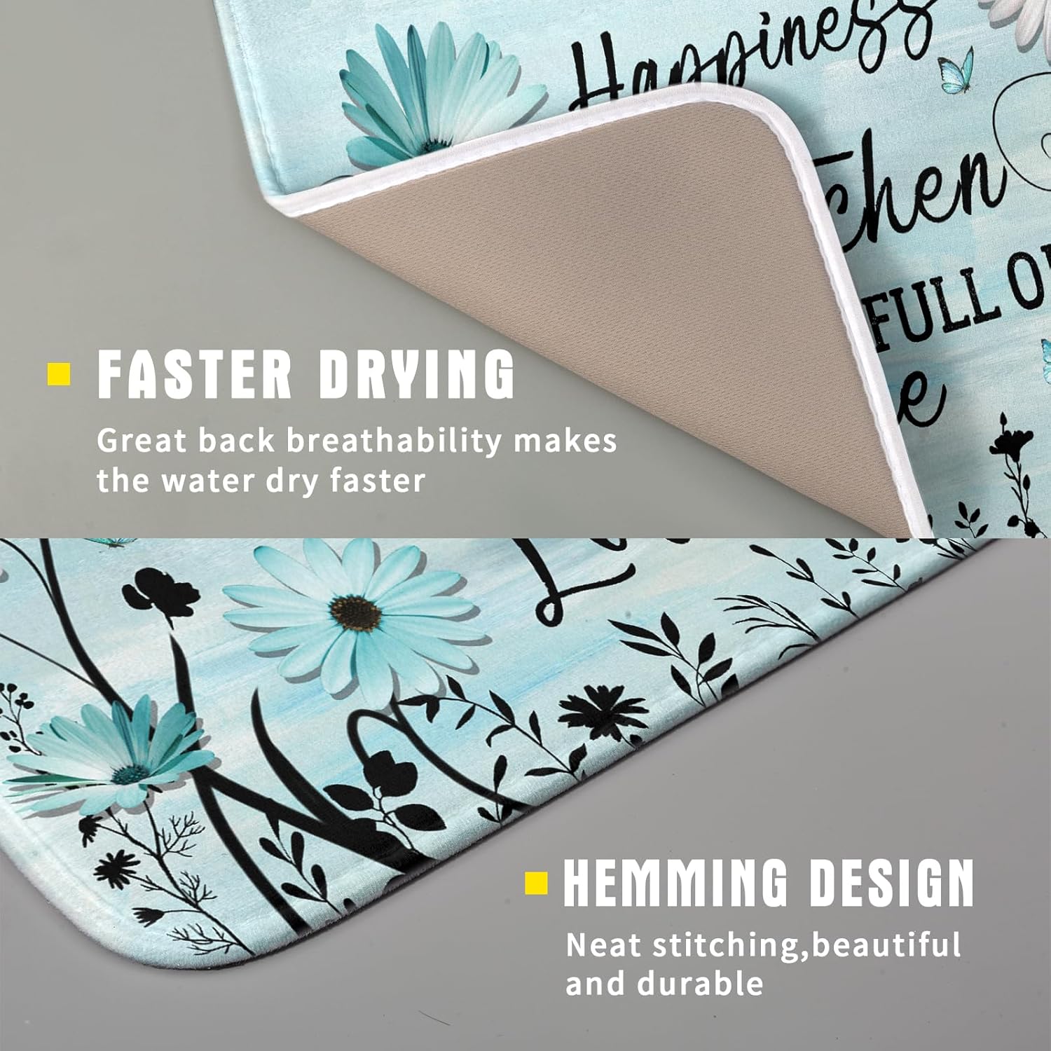 - 【Wide Usage】The dish drying mat designed with flower butterfly pattern, it is beautiful, soft, and durable. Not only a dish drying mat, cup mat, heat resistant mat, you can also use it as a kitchen countertop insulation mat. It is also a good choice to use it as a pet mat, picnic mat.
