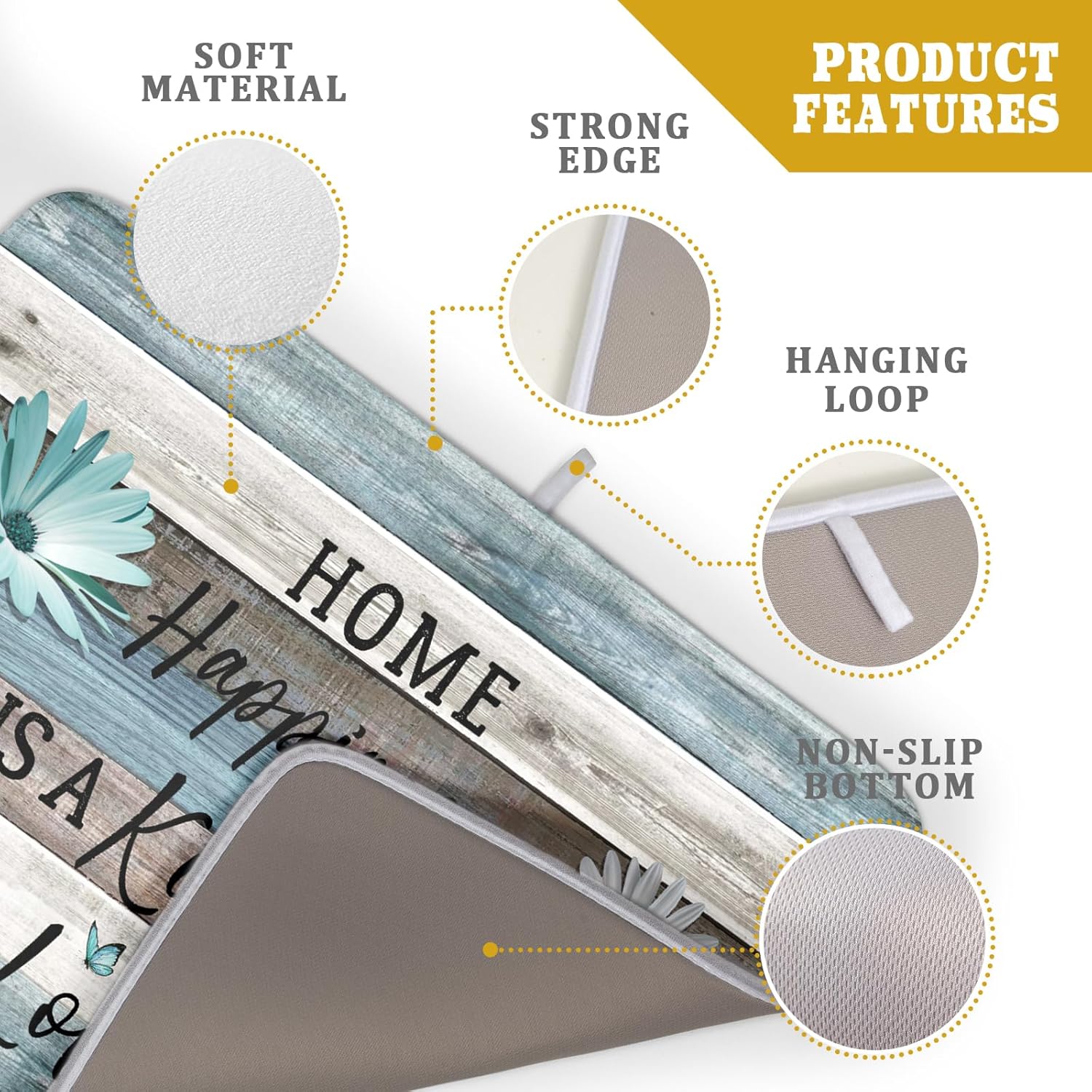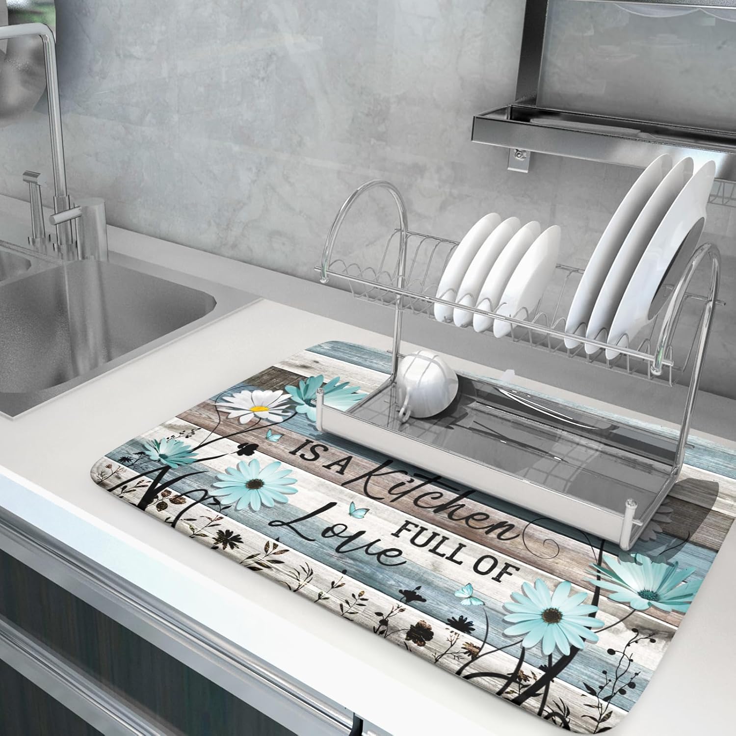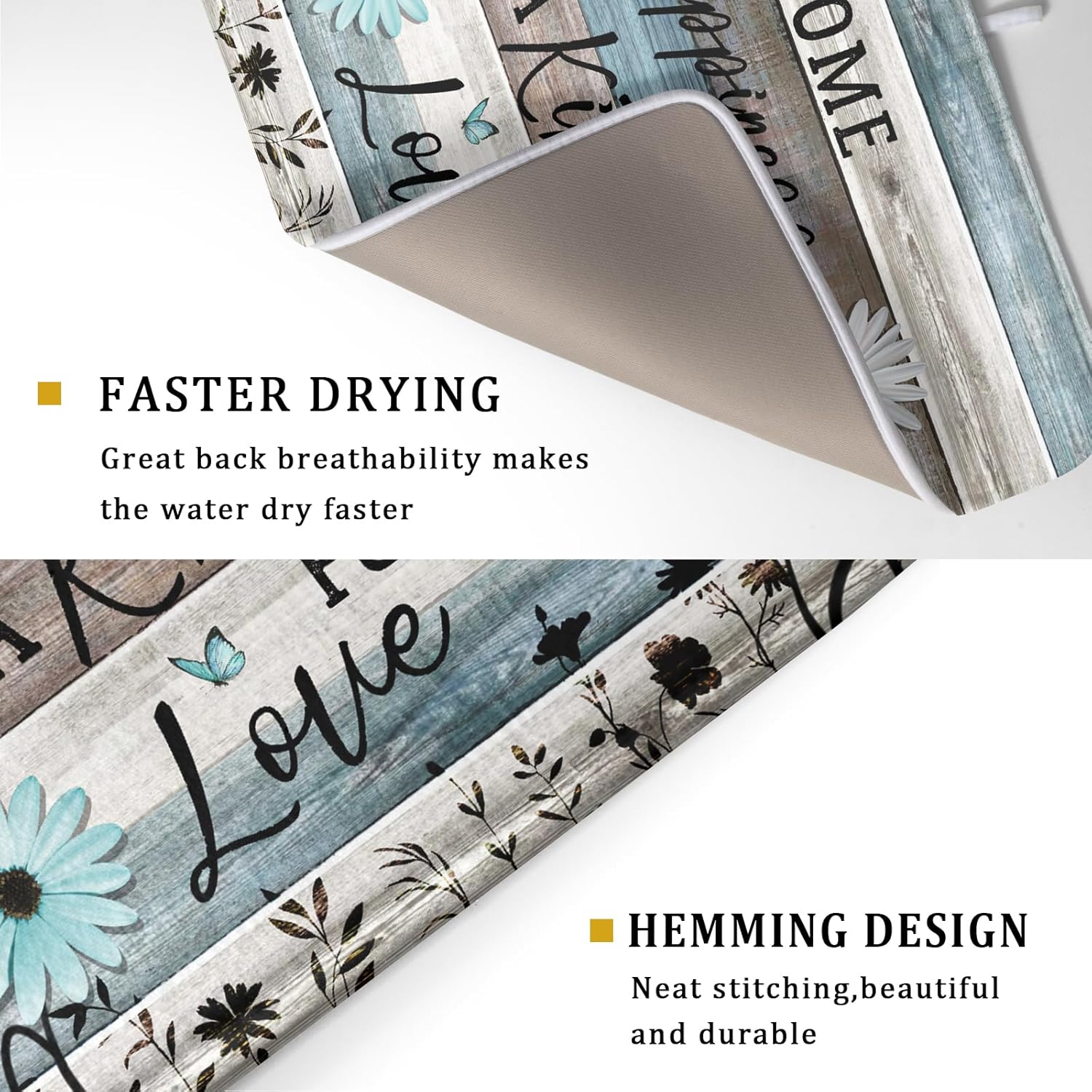 Daisy Floral Dish Drying Mat 18x24 Inches Rustic Wood Microfiber Absorbent Reversible Dish Draining Pad Fast Dry Kitchen Accessories