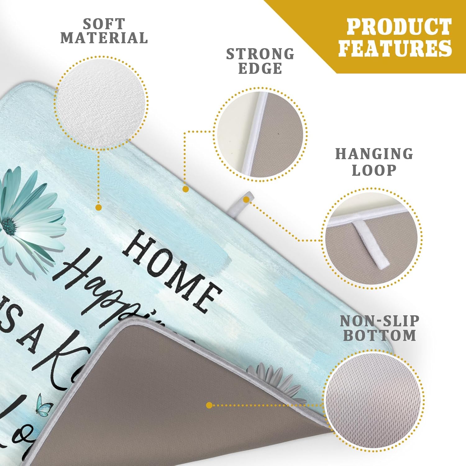 - 【Easy to Storage】This happiness is a kitchen full of love design drying mat with hang rope, soft and foldable, durable, easy to storage it by hanging or folding it up in a drawer or tuck it elsewhere. Perfect for tight spaces like campers, boats and cottages where having a dual purpose item will come in handy.