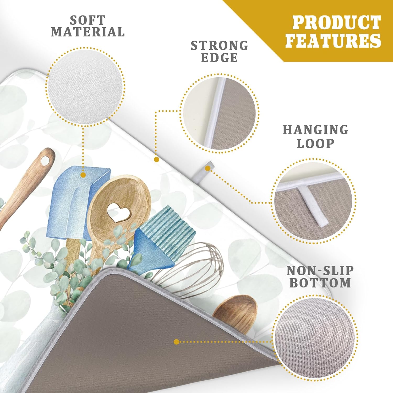 - 【Wide Usage】The dish drying mat designed with kitchen tool pattern, it is beautiful, soft, and durable. Not only a dish drying mat, cup mat, heat resistant mat, you can also use it as a kitchen countertop insulation mat. It is also a good choice to use it as a pet mat, picnic mat.