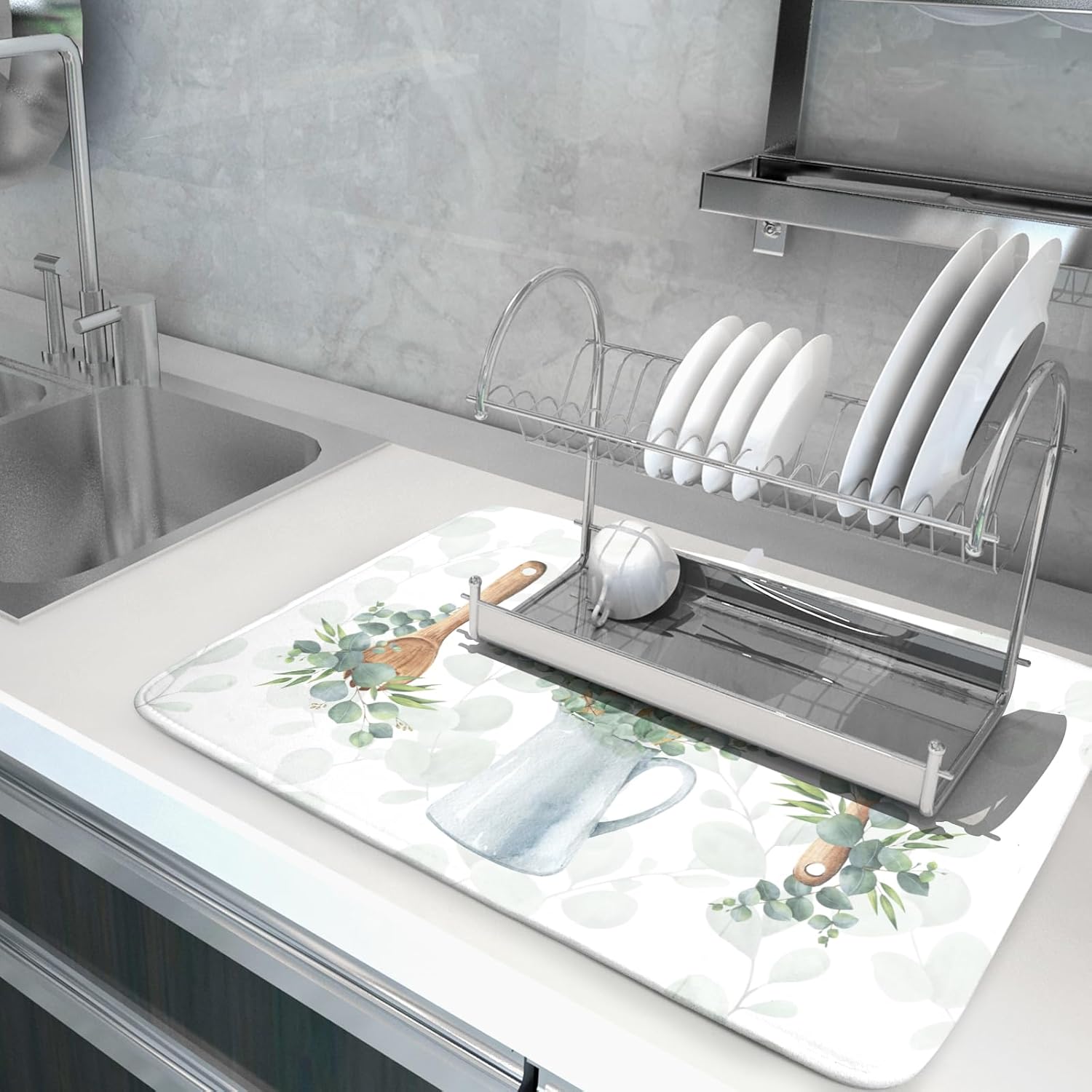 Sage Green Dish Drying Mat for Kitchen Counter, Cooking Supplies Reversible Dish Drainer Rack Pad Fast Dry Kitchen Accessories 18x24 Inch
