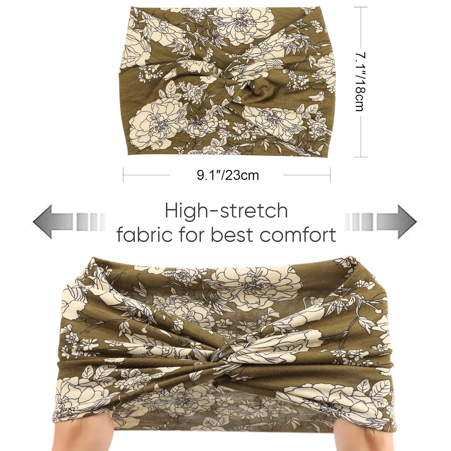 - SIZE: The wide headband measures 9.1"/23cm in length, 7.1"/18cm in width and can be stretched easily, one size fits most, stretchy and very soft.
