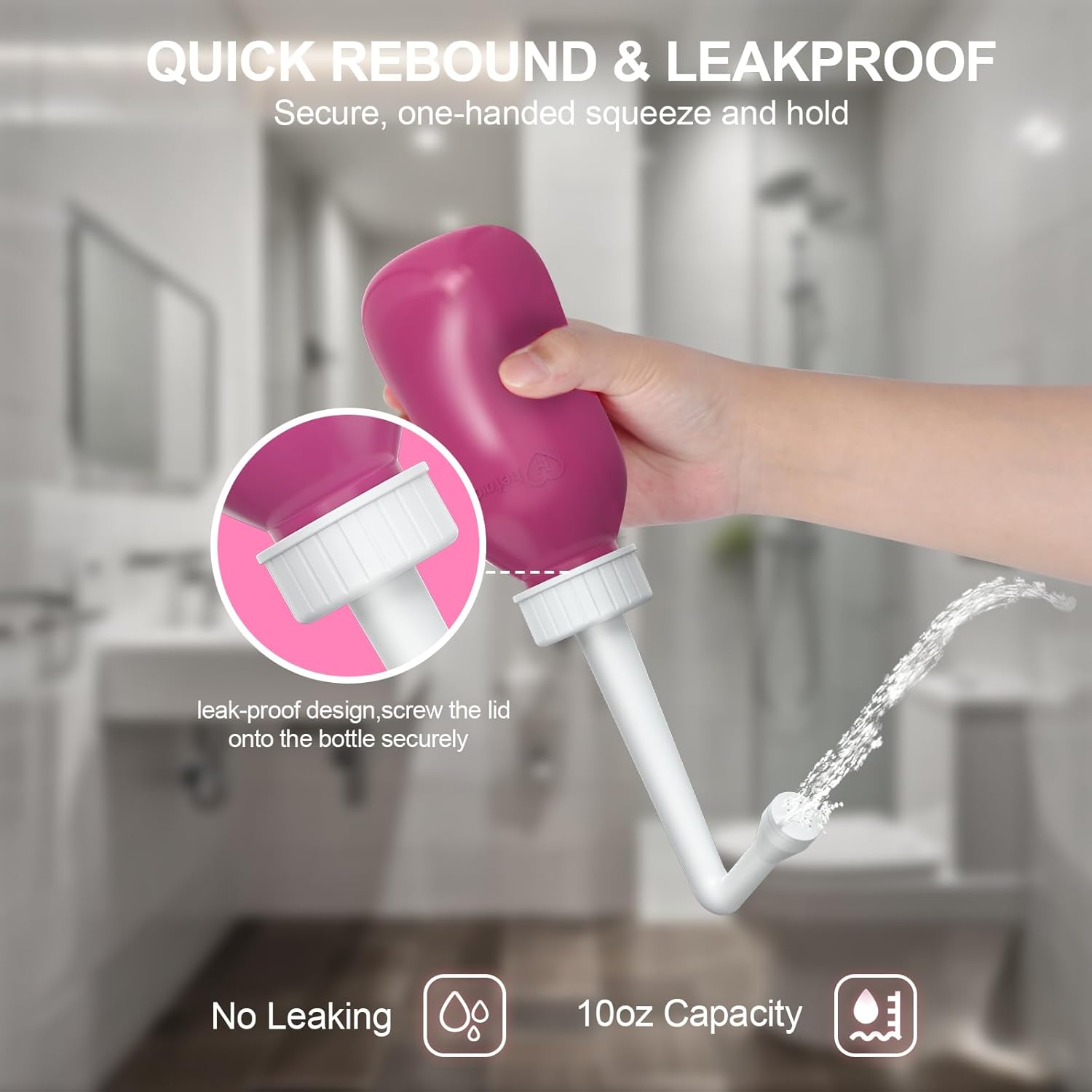 - 10-OZ LEAK-PROOF PERINEAL BOTTLE: Equipped with a 12-hole spray nozzle, it provides a steady, continuous stream and precise pressure for maximum comfort. Soft EVA, reliable BPA-free plastic bottles with strong flow, can be used for Warm water, Cold water, or Witch Hazel Foam.