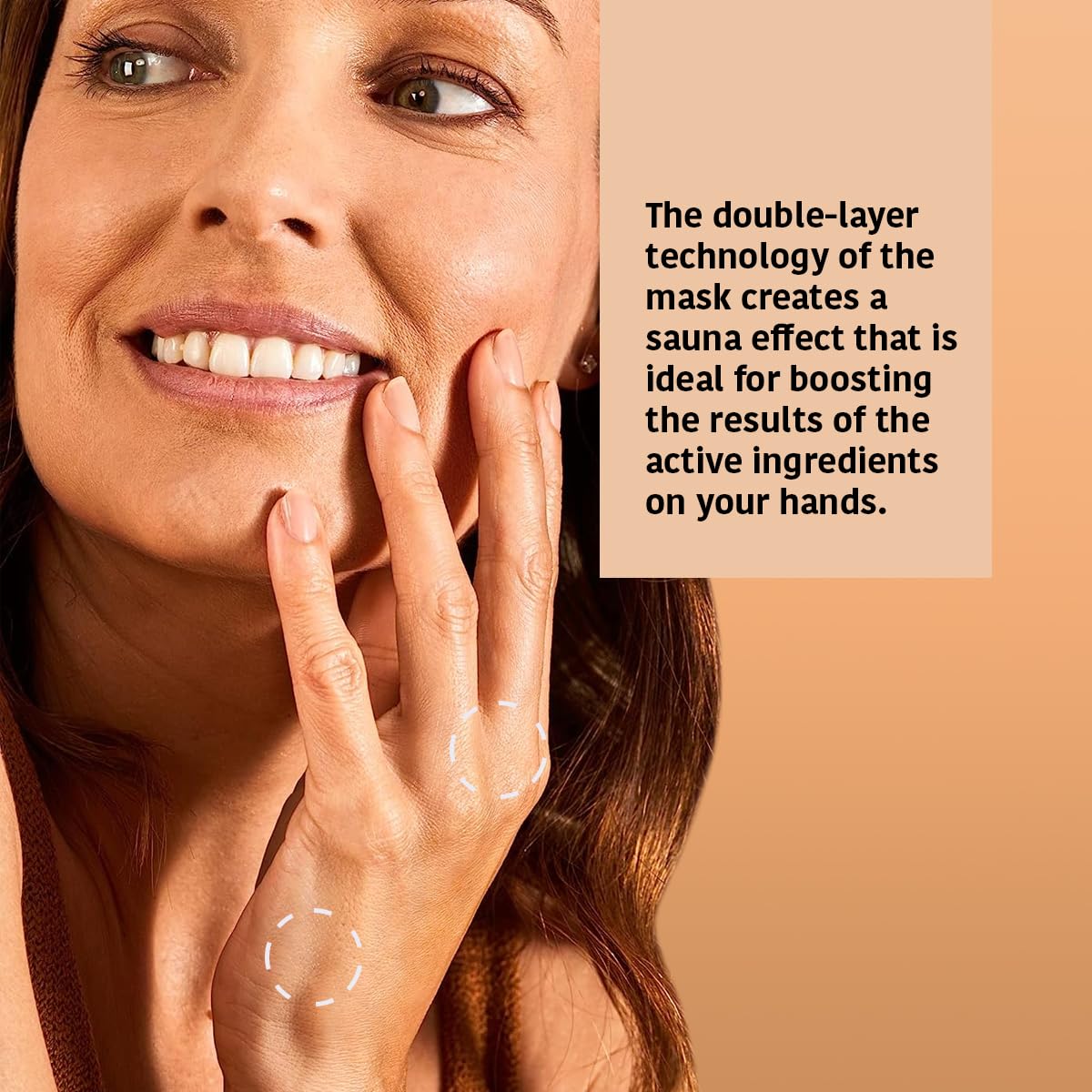 - INTENSIVE HAND TREATMENT: Repairs and moisturizes dry and damaged hands. It has a base of peach and shea butter, which helps repair, regenerate and prevents aging. Its double-layer technology creates a sauna effect to enhance the results. Pack - Contains 4 pairs of gloves