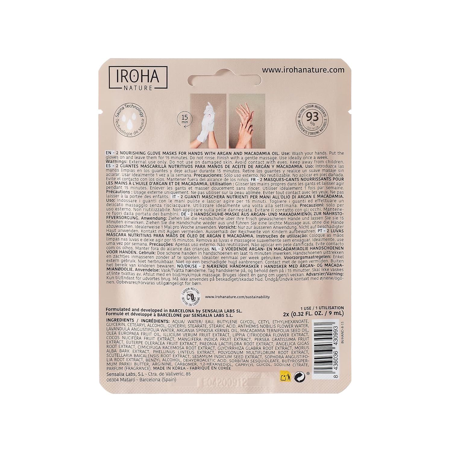 IROHA NATURE Nourishing Hand Mask Gloves | 4 Pairs | Argan & Macadamia Oil | Intense Nutrition for Dry Hands | 93% Natural Ingredients | Vegan